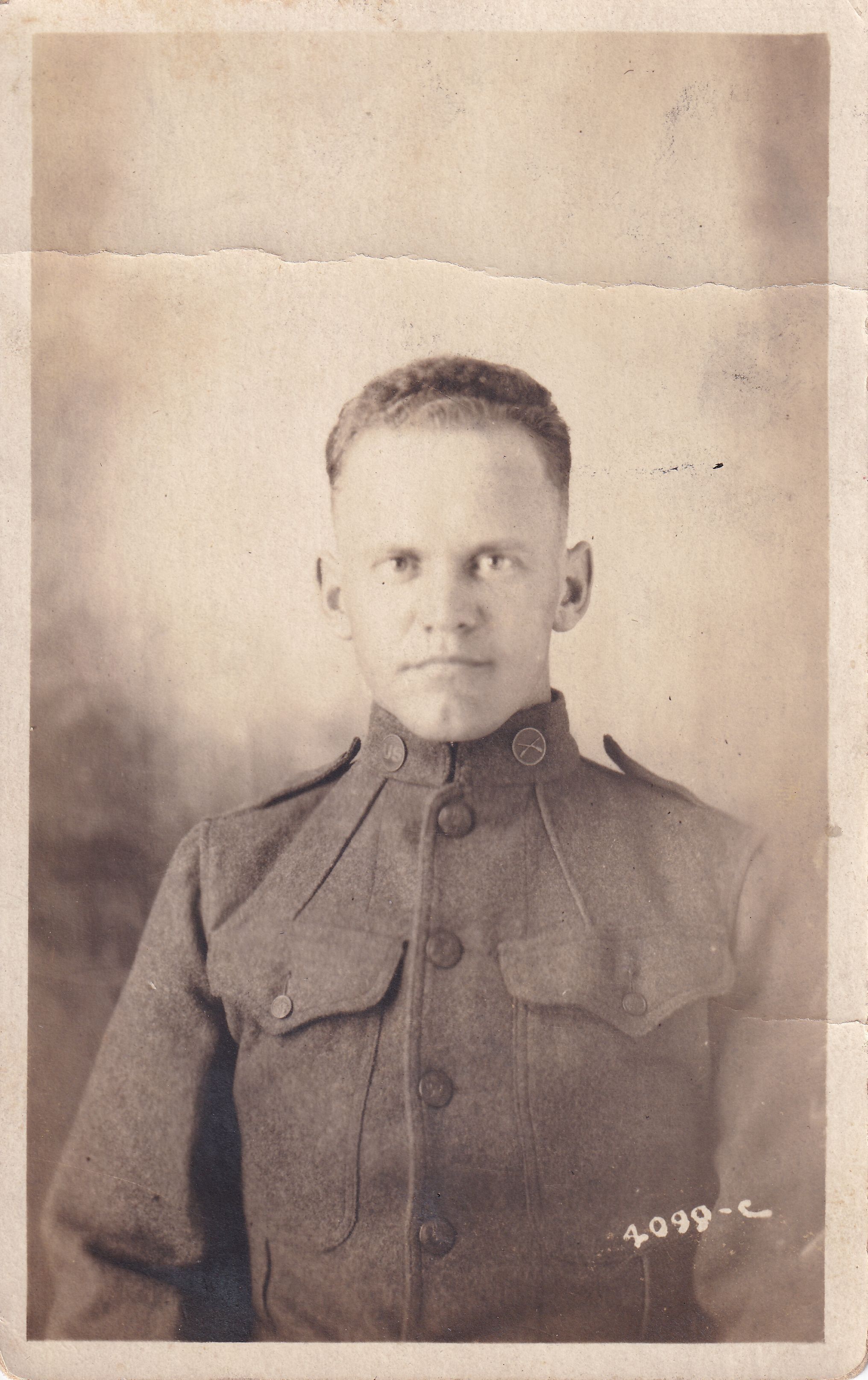 SOURCE CITATION: Samuel Earl Davis [1893-1976] in WWI uniform; circa 1918; item no. MORK-AN002-0026, Davis Series, Elizabeth Jane (Davis) (Rex) Morris Collection, shared by her grandchildren, John Robert Morris and Kathleen (Morris) Miller; Greene Connections Archives Project (www.GreeneConnections.com).