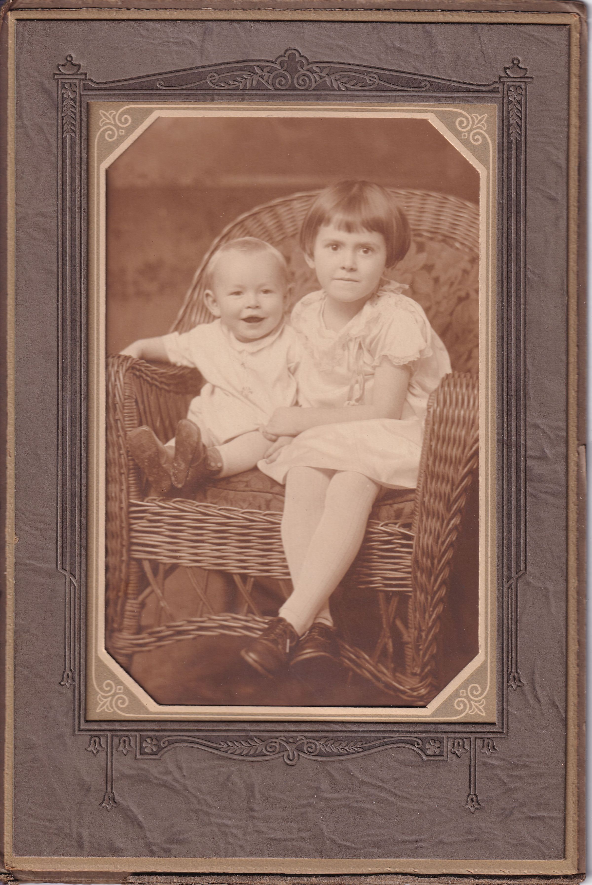 SOURCE CITATION: [Left-Right]: Wilbur Earl Davis [1926-2020] and Sara Jean Davis [1922-2011] - children of Samuel Earl Davis and Ruth Lee Springer; circa 1927-1928; item no. MORK-AN002-0030, Davis Series, Elizabeth Jane (Davis) (Rex) Morris Collection, shared by her grandchildren, John Robert Morris and Kathleen (Morris) Miller; Greene Connections Archives Project (www.GreeneConnections.com).