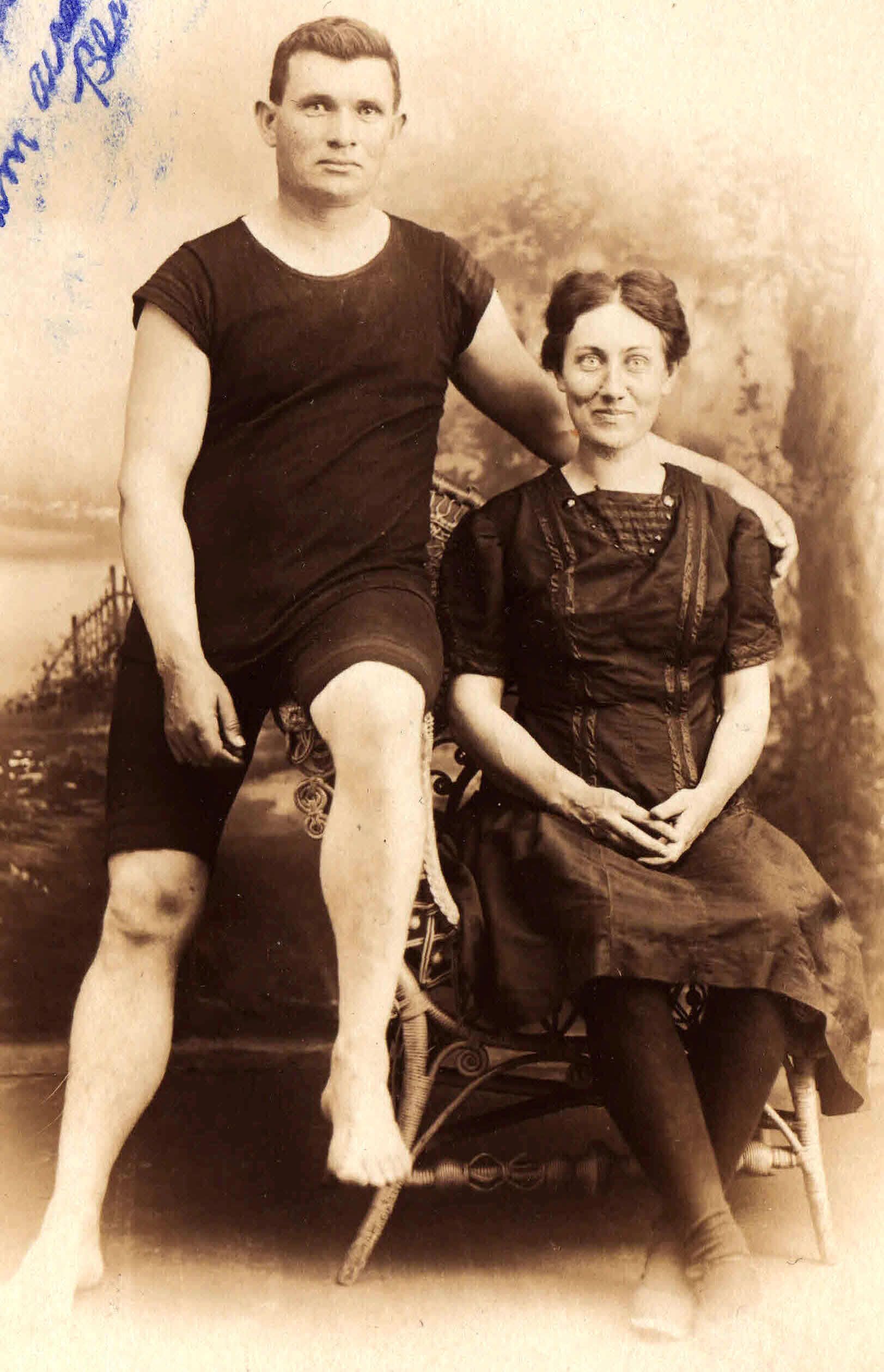SOURCE CITATION: Samuel S. Watson and his wife, Blanche (Phillips) Watson, on their honeymoon to Atlantic City, New Jersey; dated 1913, image by Myers-Cope Co., 1521 & 1635 Boardwalk, Atlantic City, NJ; item no. BRIG0001, Watson Series, Garnet (Watson) Bristor Collection, Greene Connections Archives Project (www.GreeneConnections.com).
