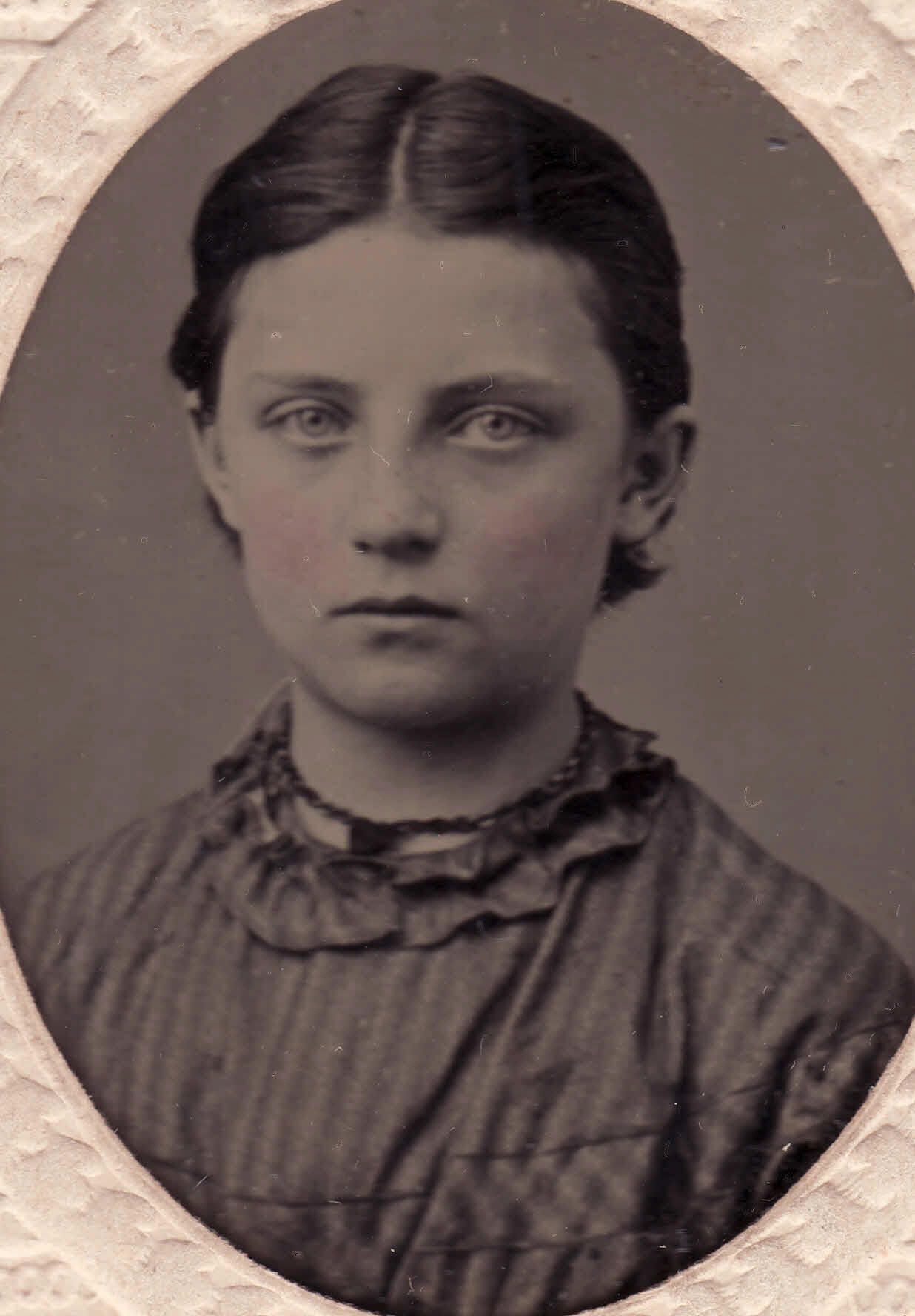 Source Citation: Sarah Amanda Throckmorton [1858-1940] - daughter of James Throckmorton and Mary Malvina Harvey; item no. THRM_AN002_0001, Mary “Mamie” (Throckmorton) Bonham Collection, shared by Maggie Belle (Hartzell) (Rush) Conklin, Greene Connections Archives Project (www.GreeneConnections.com).