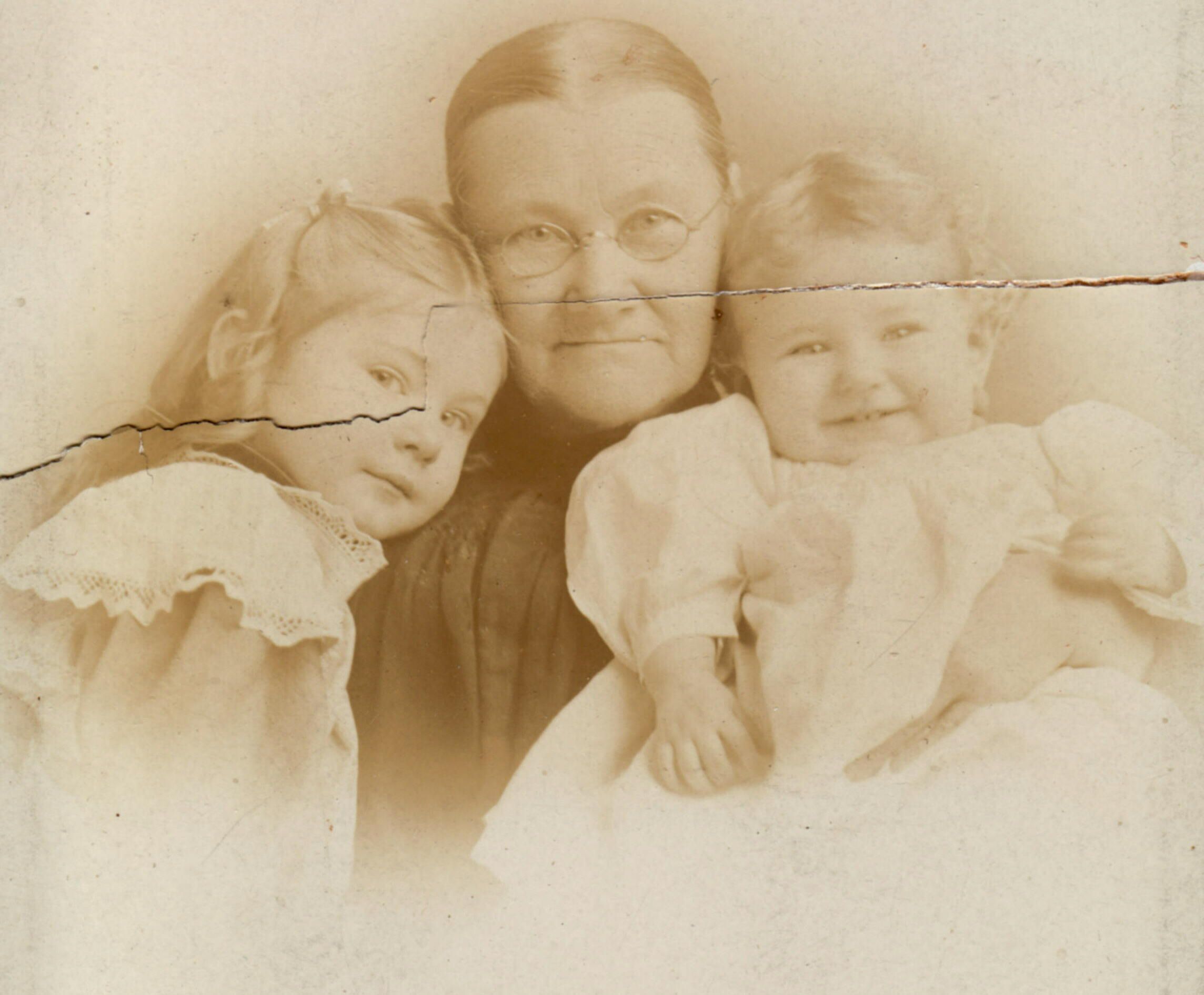 Source Citation: Sarah Ann (Jones) Elms with her granddaughters, item no. STEC0002, Sarah Virginia (Elms) Simpson Collection, shared by Cicely Stewart-Kunsman, Greene Connections Archives Project (www.GreeneConnections.com).