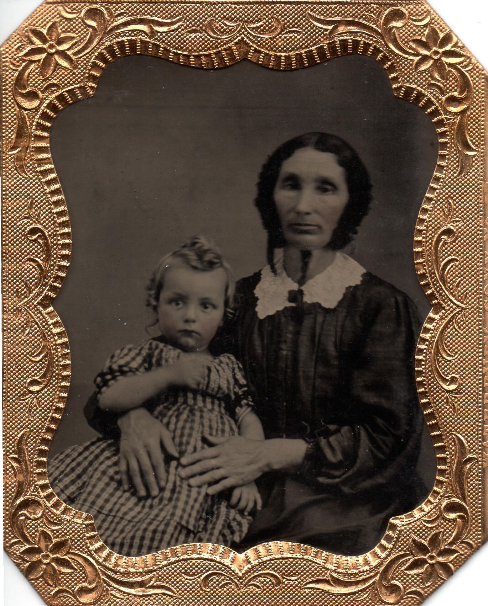 Source Citation: Sarah Inghram (Thockmorton) Harvey [1829-1902] holding her daughter Alice Isabelle (Harvey) Fisher [1855-1921], item no. ROHR_AN001_0007, John Corbly Gregg Collection, shared by John Rohrman, Greene Connections Archives Project (www.GreeneConnections.com).