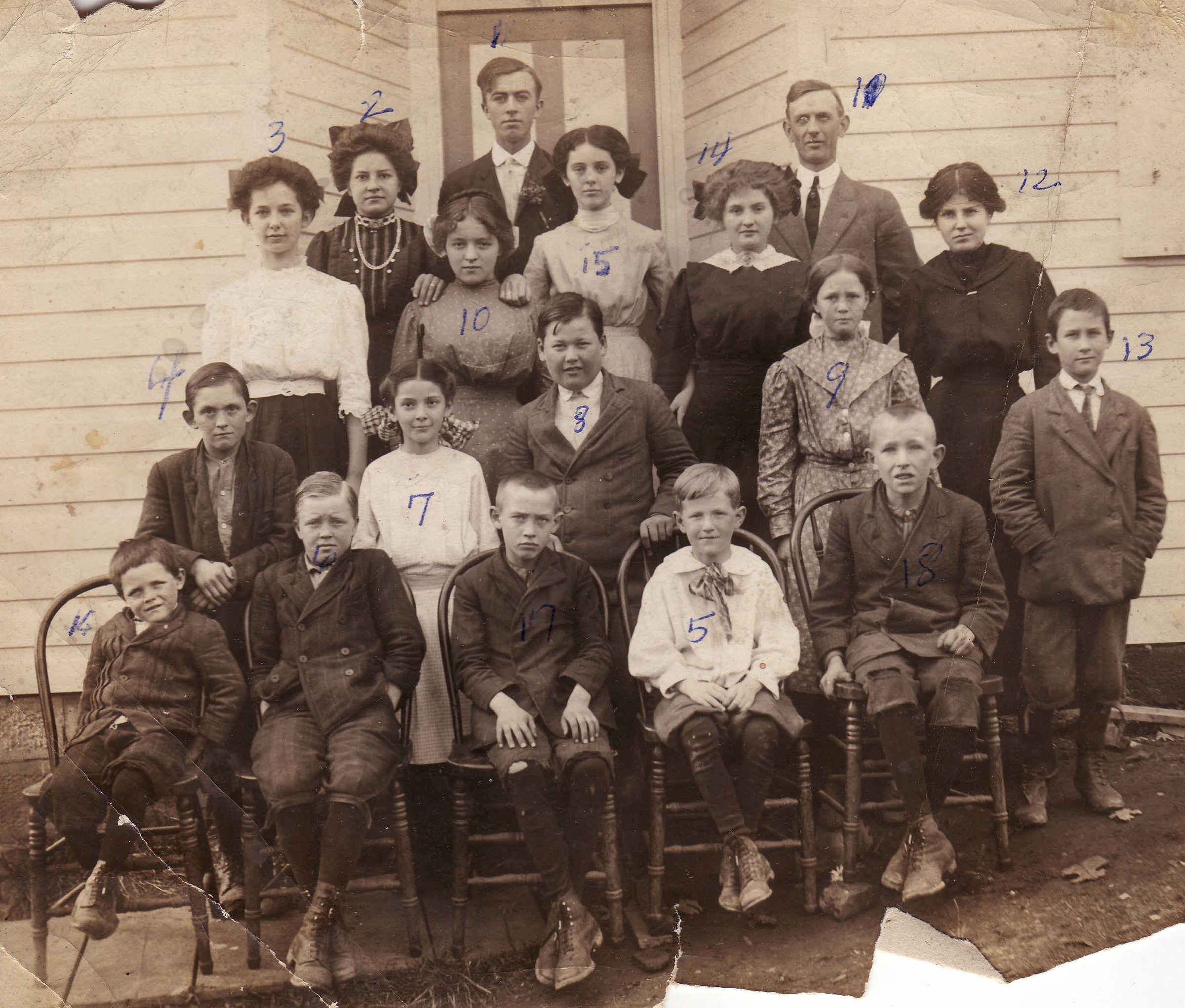 MIDDLE (2nd row) - Jesse Wise (#4), Harriet Mason (#7), Arthur Fuller (#8), Frances Taylor (#9), Charles Fuller (#13);