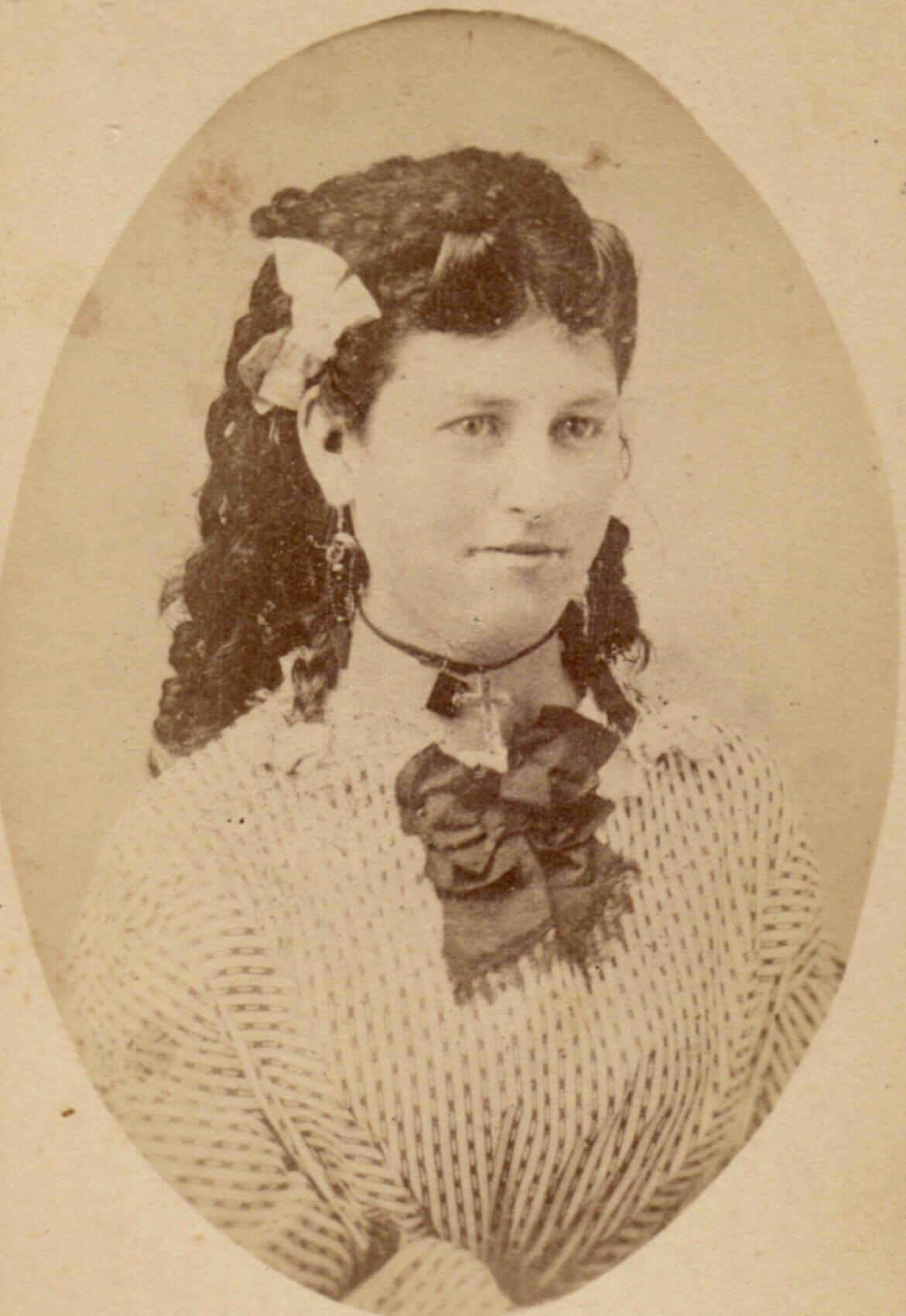 SOURCE CITATION: Silveus-Taylor Album 01, Photo 15 - Mrs. Levi Taylor; circa 1870-1880, image by D. A. Leach, Photographer, Indianola, Iowa; item no. GCHS-AN011-0015, Greene County Historical Society Collection, Greene Connections: Greene County, Pennsylvania Archives Project (www.GreeneConnections.com).