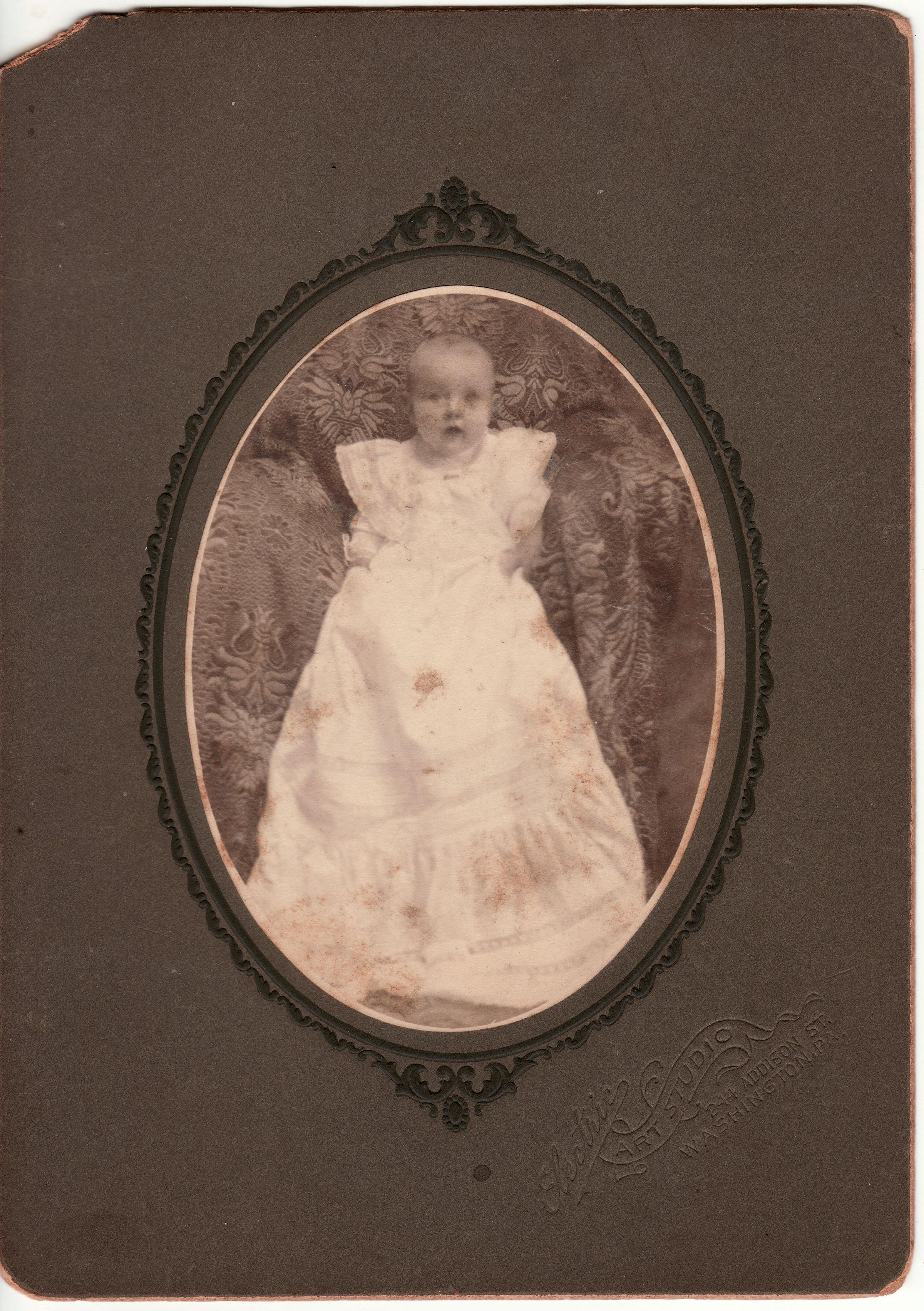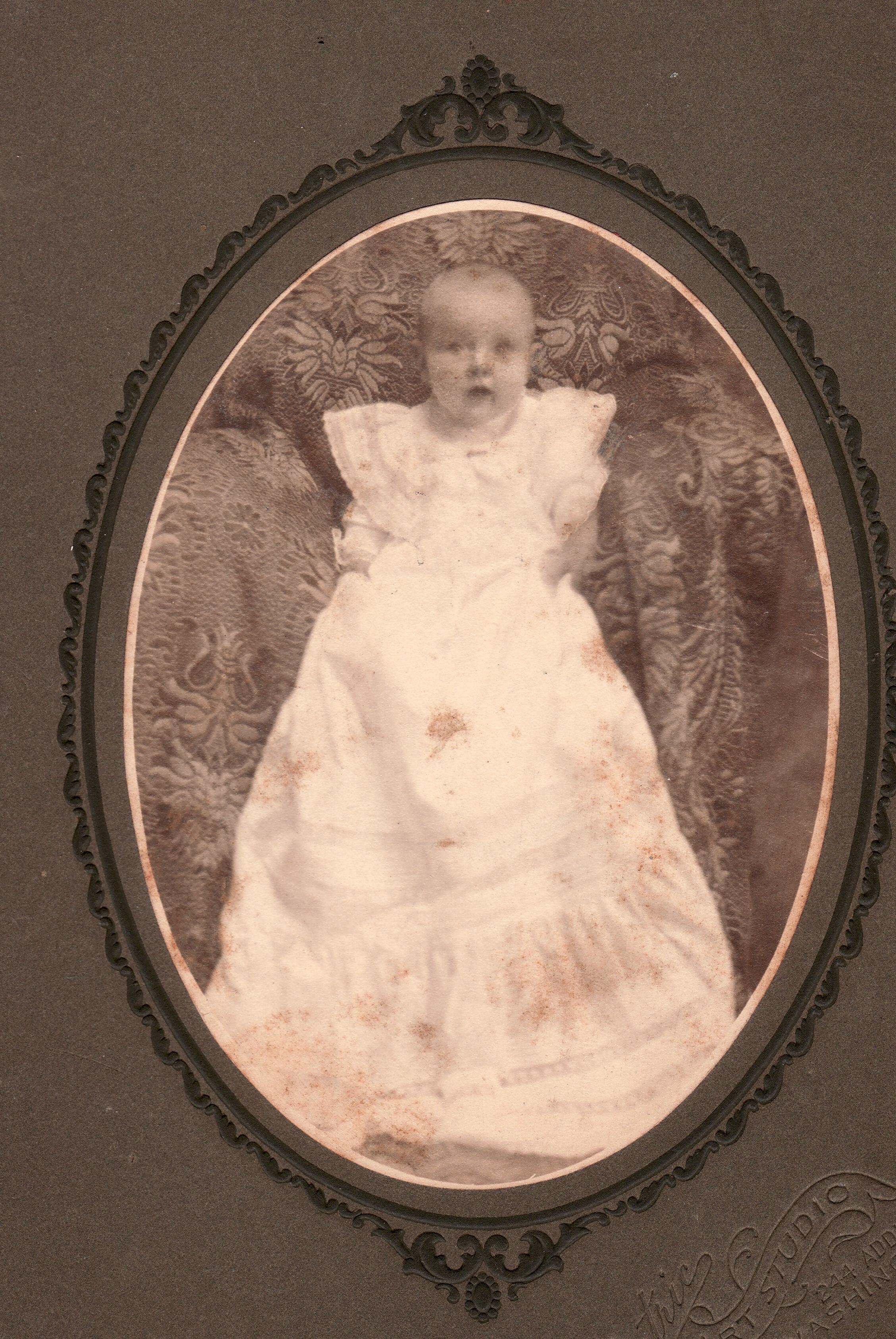 Handwritten inscription reads, "Olive Clutter when a baby."