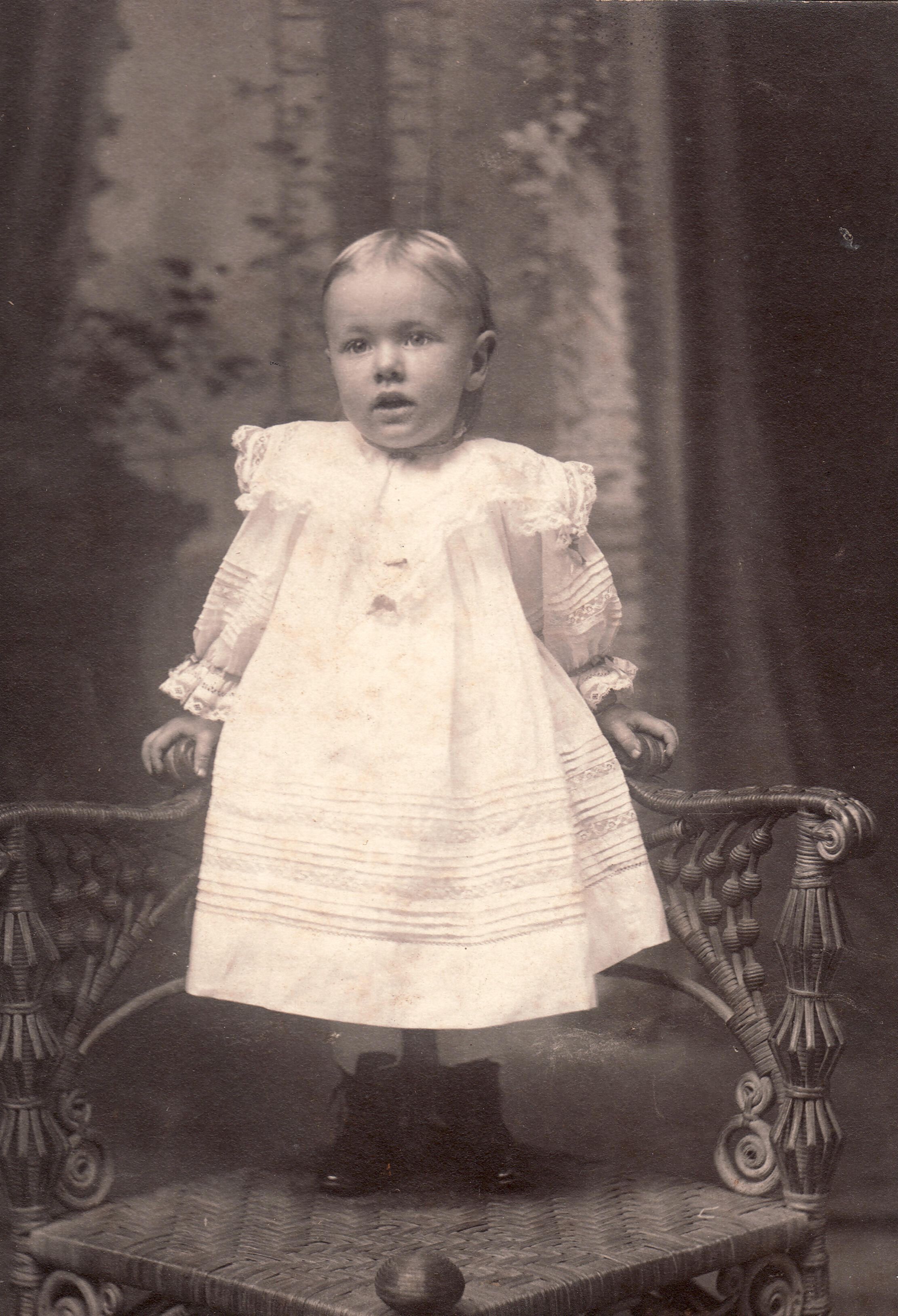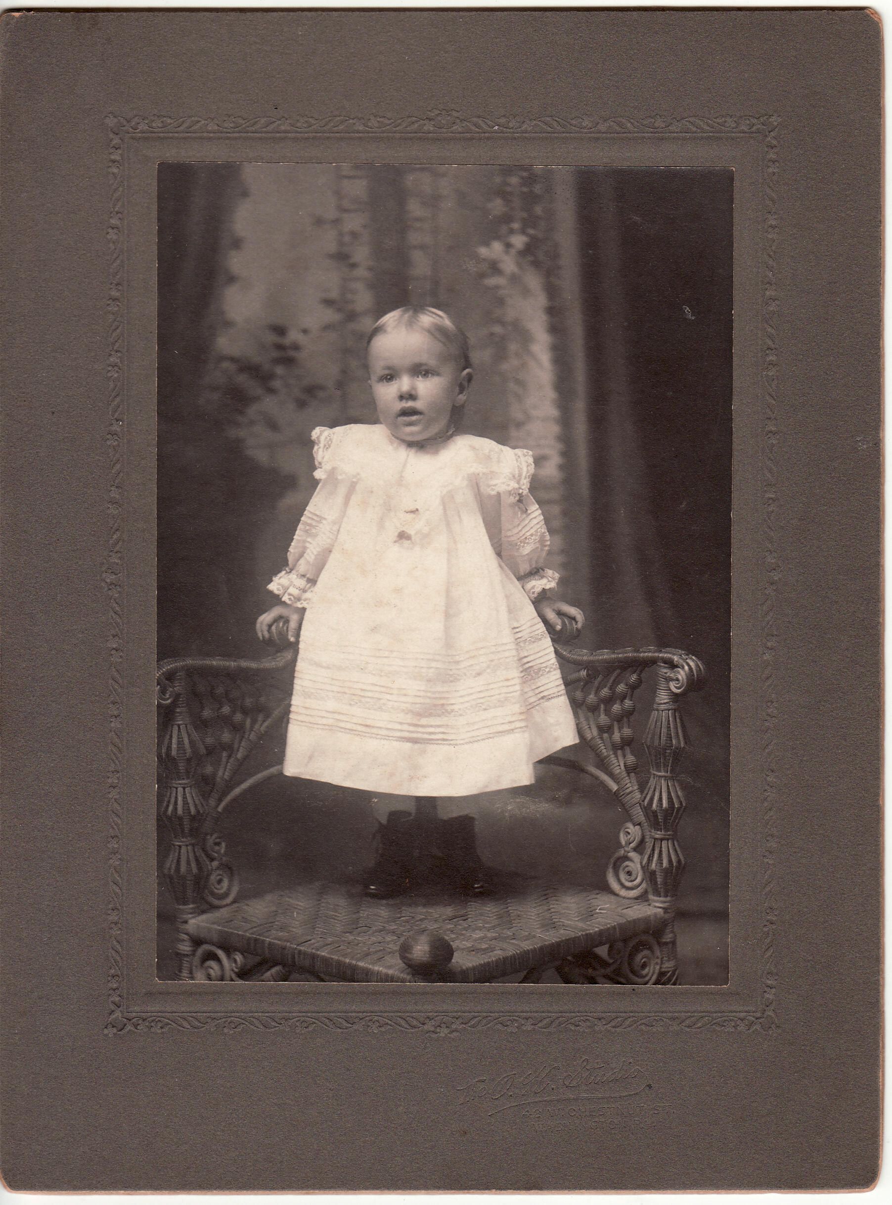 SOURCE CITATION: Silvie Olive (Clutter) Swart [1905-1992]; image by O. K. Studio, 42 W. Chestnut St., Washington, Pa., circa 1905-1906; item no. SUPL-AN005-0016, Clutter Series, Wayne Carl Swart Collection, Greene Connections Archives Project (www.GreeneConnections.com).