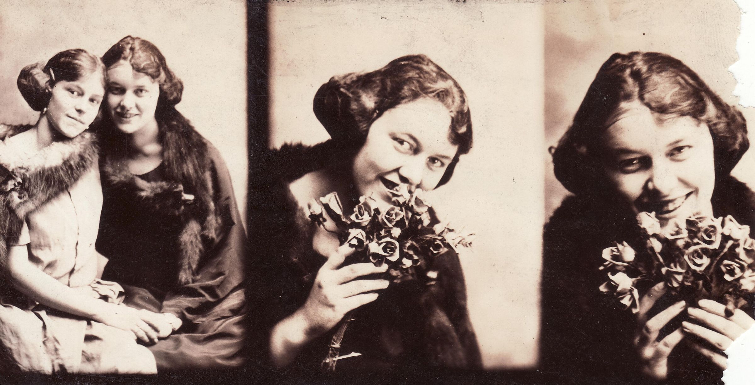 SOURCE CITATION: PHOTO 1 - Edith Taylor and Silvie Olive (Clutter) Swart [1905-1992]; PHOTOS 2 and 3 - Silvie Olive (Clutter) Swart [1905-1992]; dated 1923; item no. SUPL-AN005-0020, Clutter Series, Wayne Carl Swart Collection, Greene Connections Archives Project (www.GreeneConnections.com).