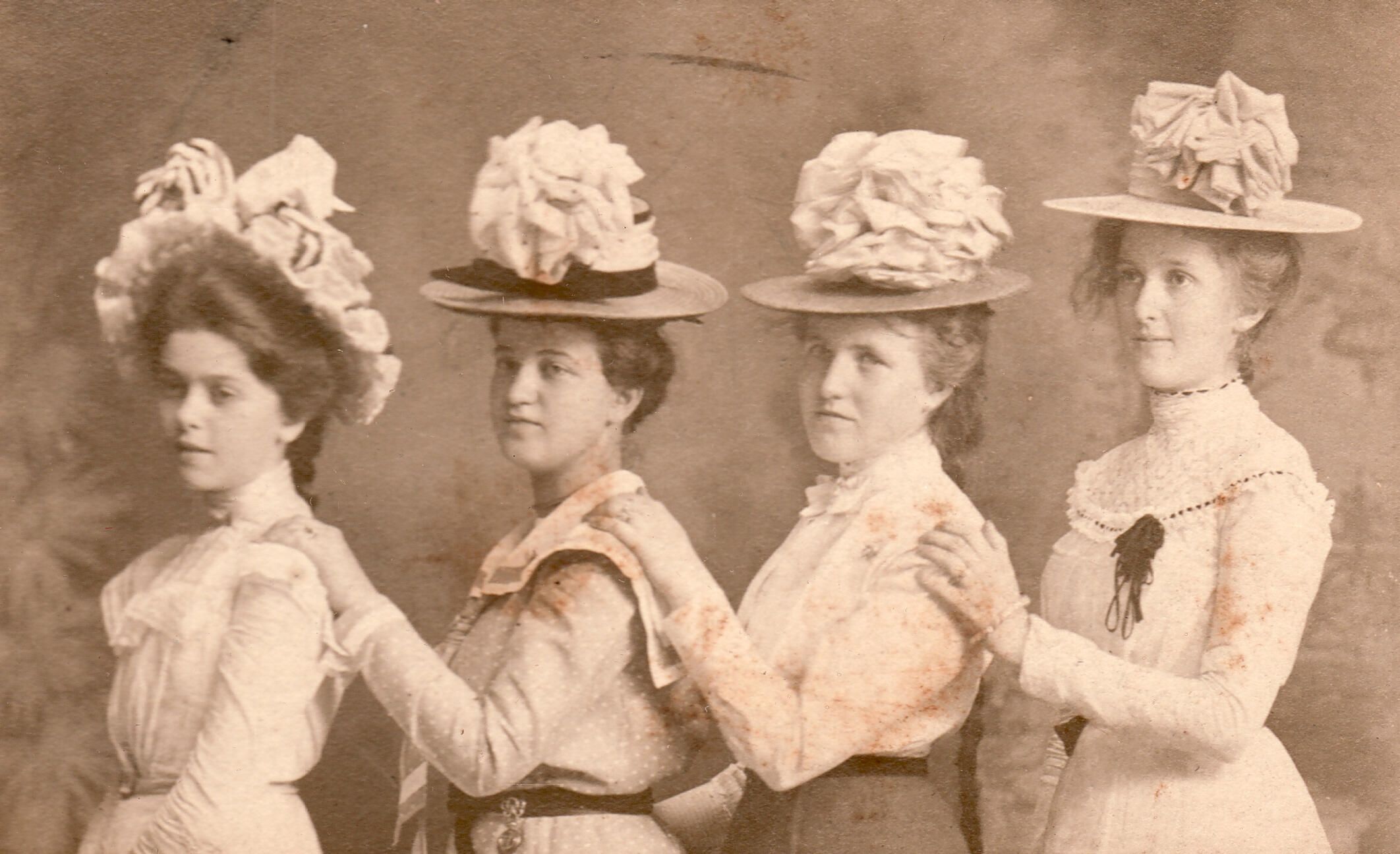Source Citation: [Left-Right]: Reba [-?-], Kate McBeth (Simpson) Merrick, Margaret Bell "Madge" (Miller) Scott, Margaret [-?-], item no. MERR-AN004-0002-0014, Robert Silas and Eva Mae (Christie) Merrick Collection, shared by Peter Merrick, Greene Connections Archives Project (www.GreeneConnections.com).