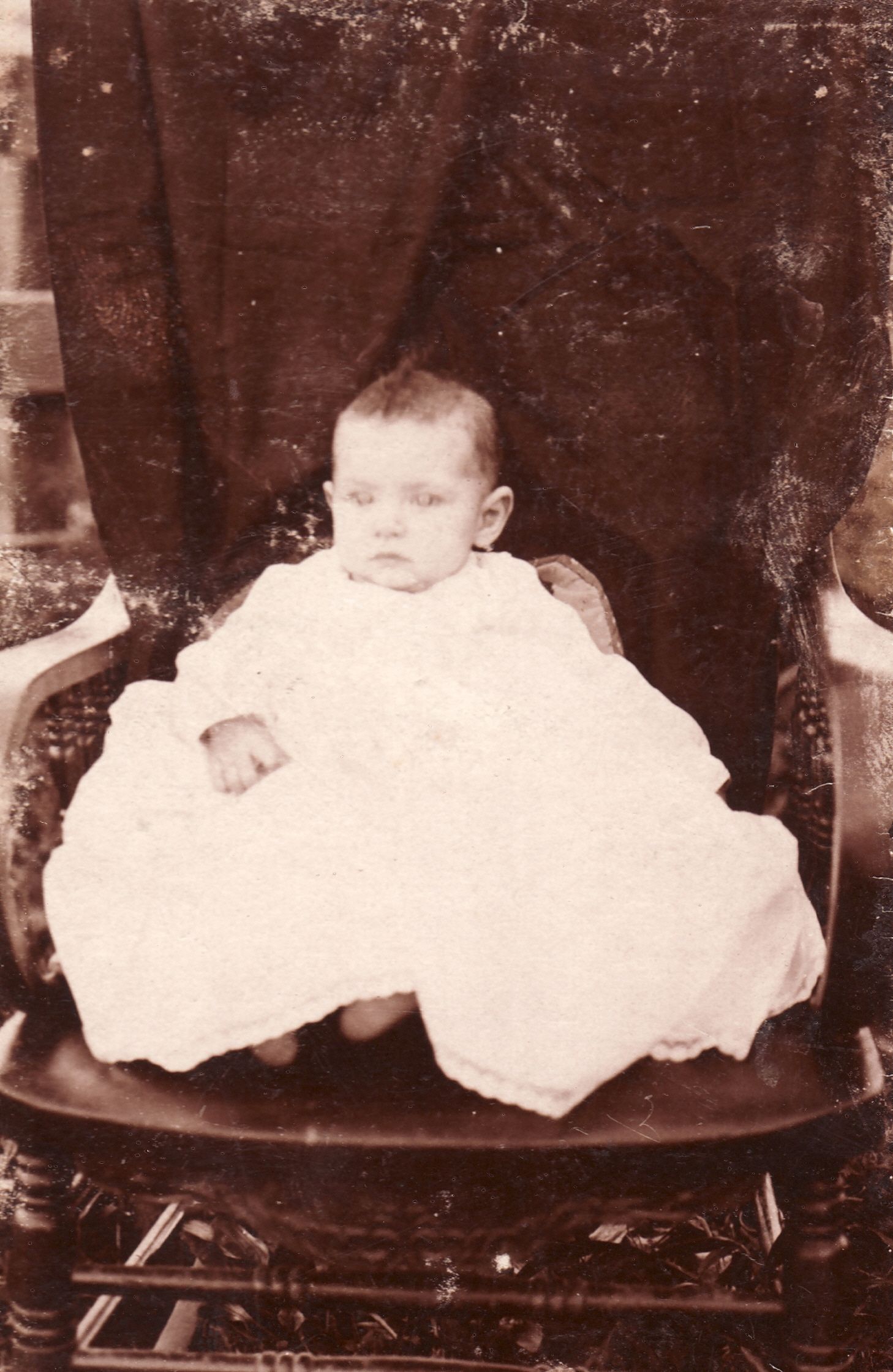 SOURCE CITATION: Stephens Album, Photo 12 - Laura Goldie (Cokeley) Miller [1905-2005], age 4 and 1/2 months; circa 1905; item no. CAND_AN007_0001_0012, Candice Lynn Buchanan Collection; Greene Connections Archives Project (GreeneConnections.com).