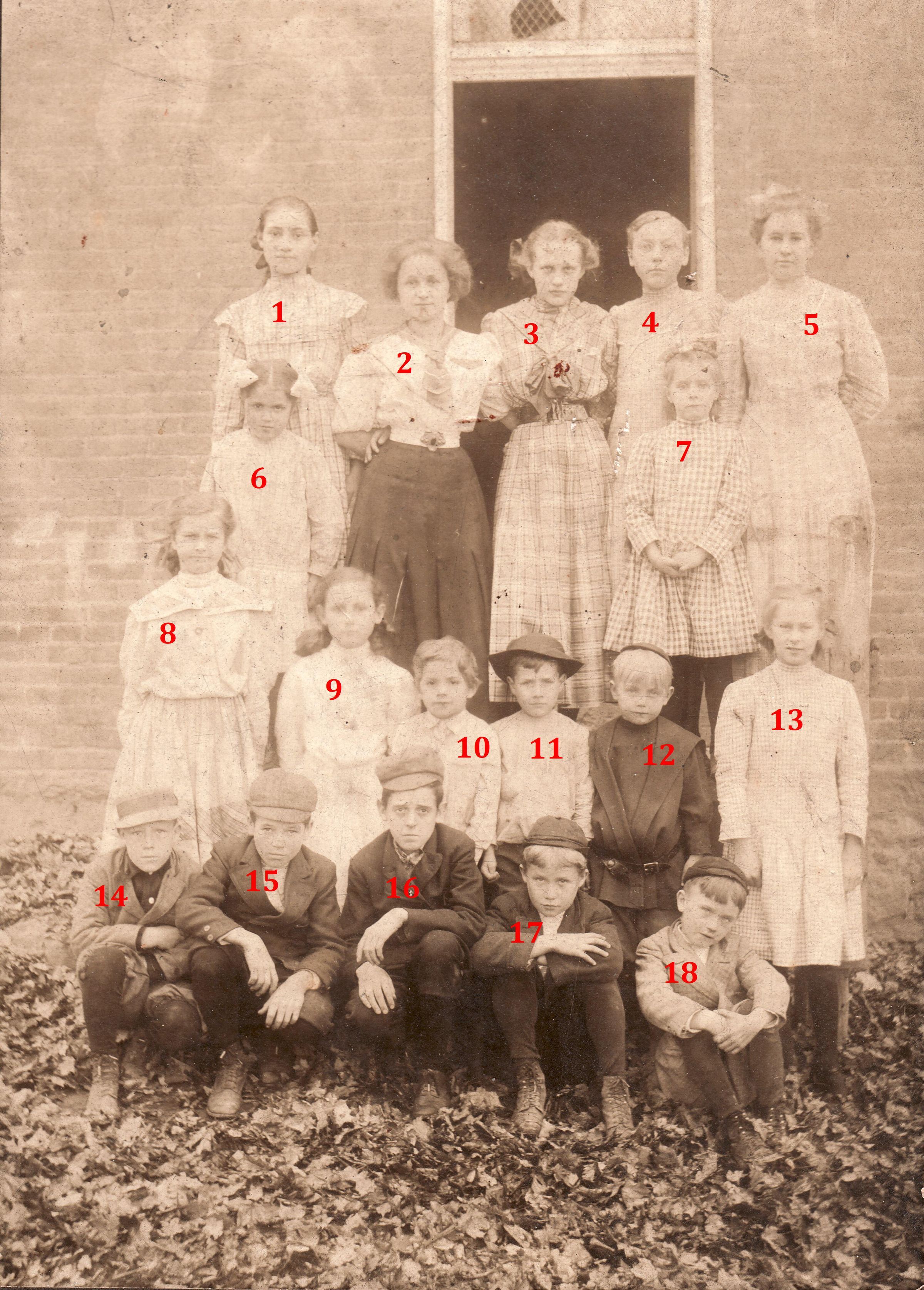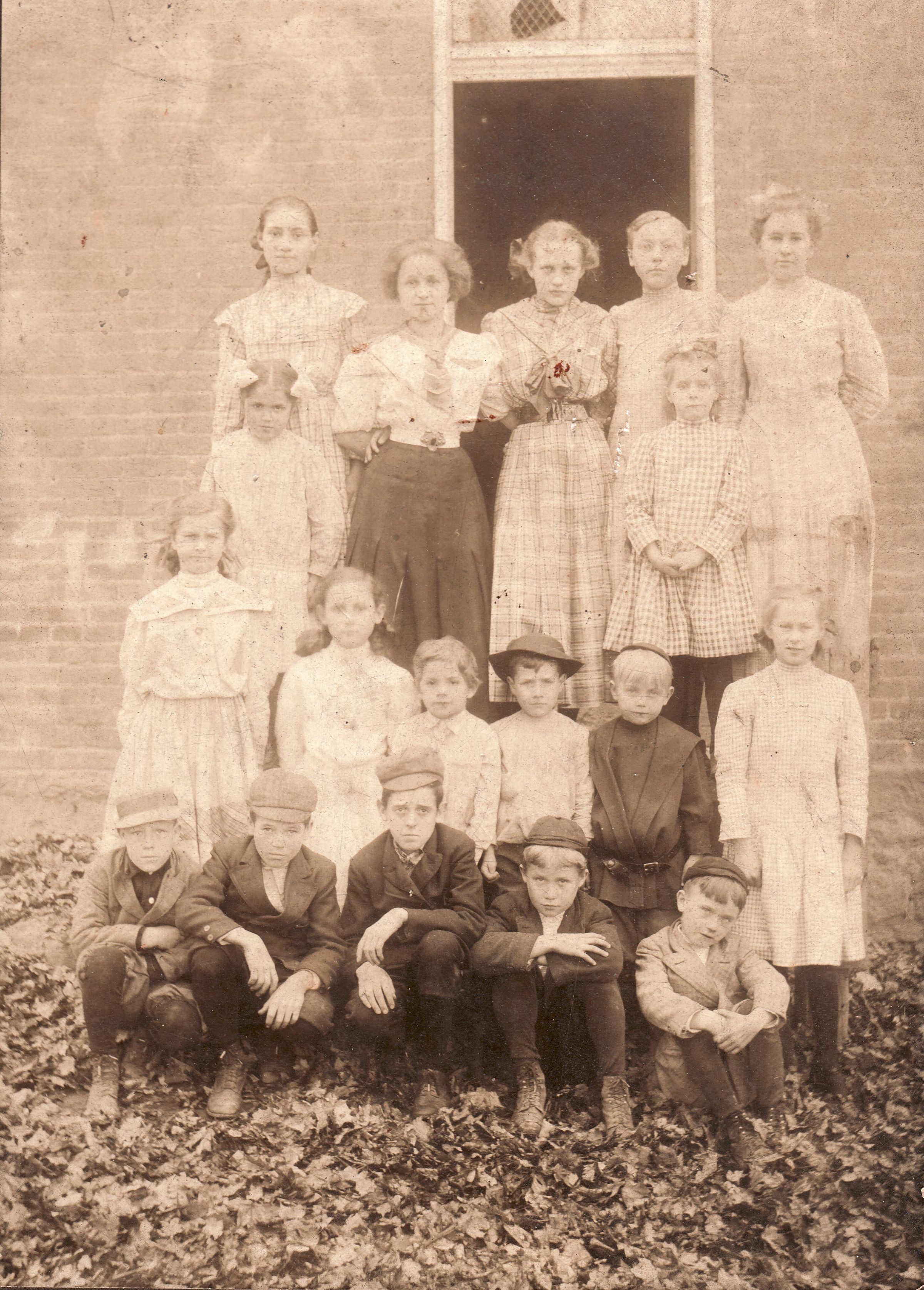 Teacher, Viola (Porter) Scott [1887-1939], with her students in Greene County, Pennsylvania.