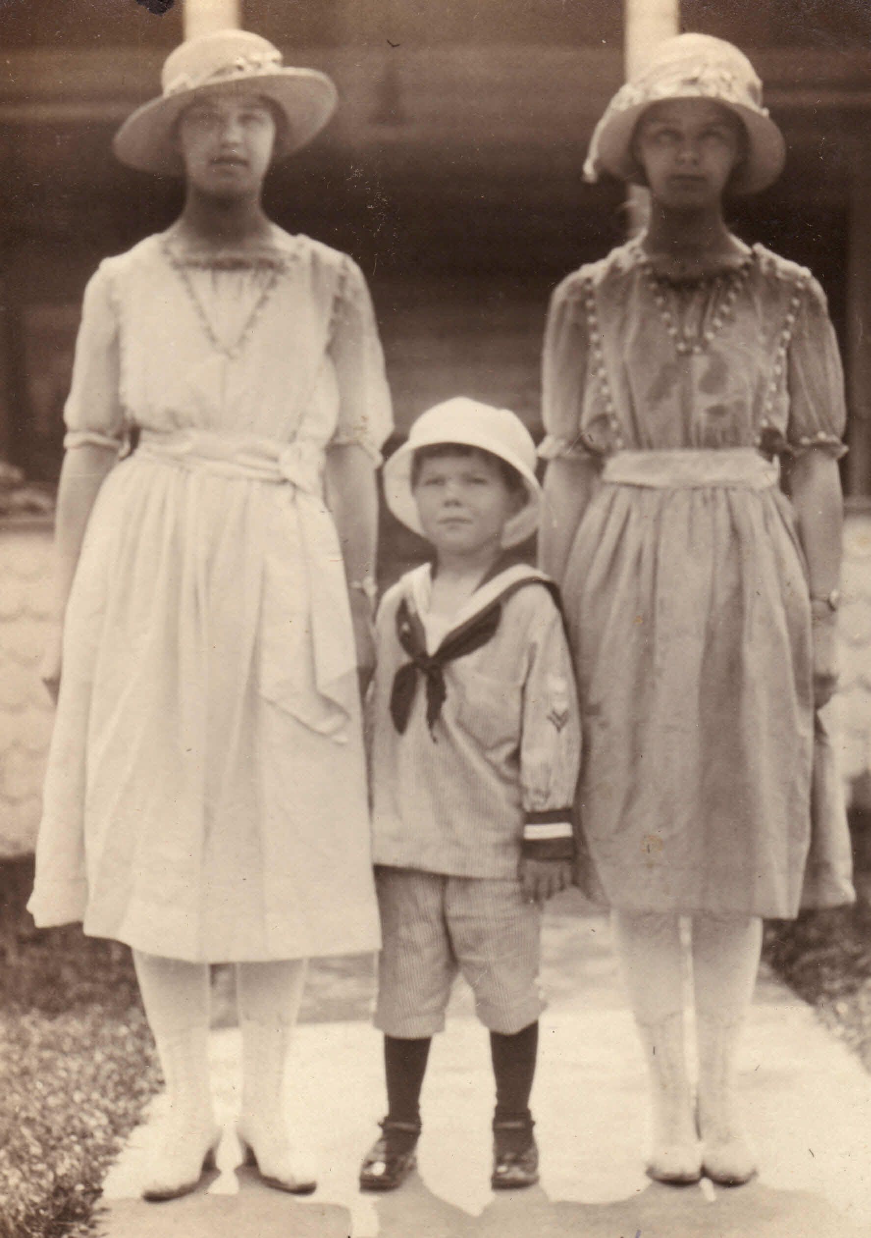 Source Citation: [Left-Right]: Thelma (Rinehart) Hughes, Willis G. Rinehart, Wilma (Rinehart) Warren, item no. RINE_AN001_0024, Russell Rinehart Collection, shared by Albie Rinehart, Greene Connections Archives Project (www.GreeneConnections.com).