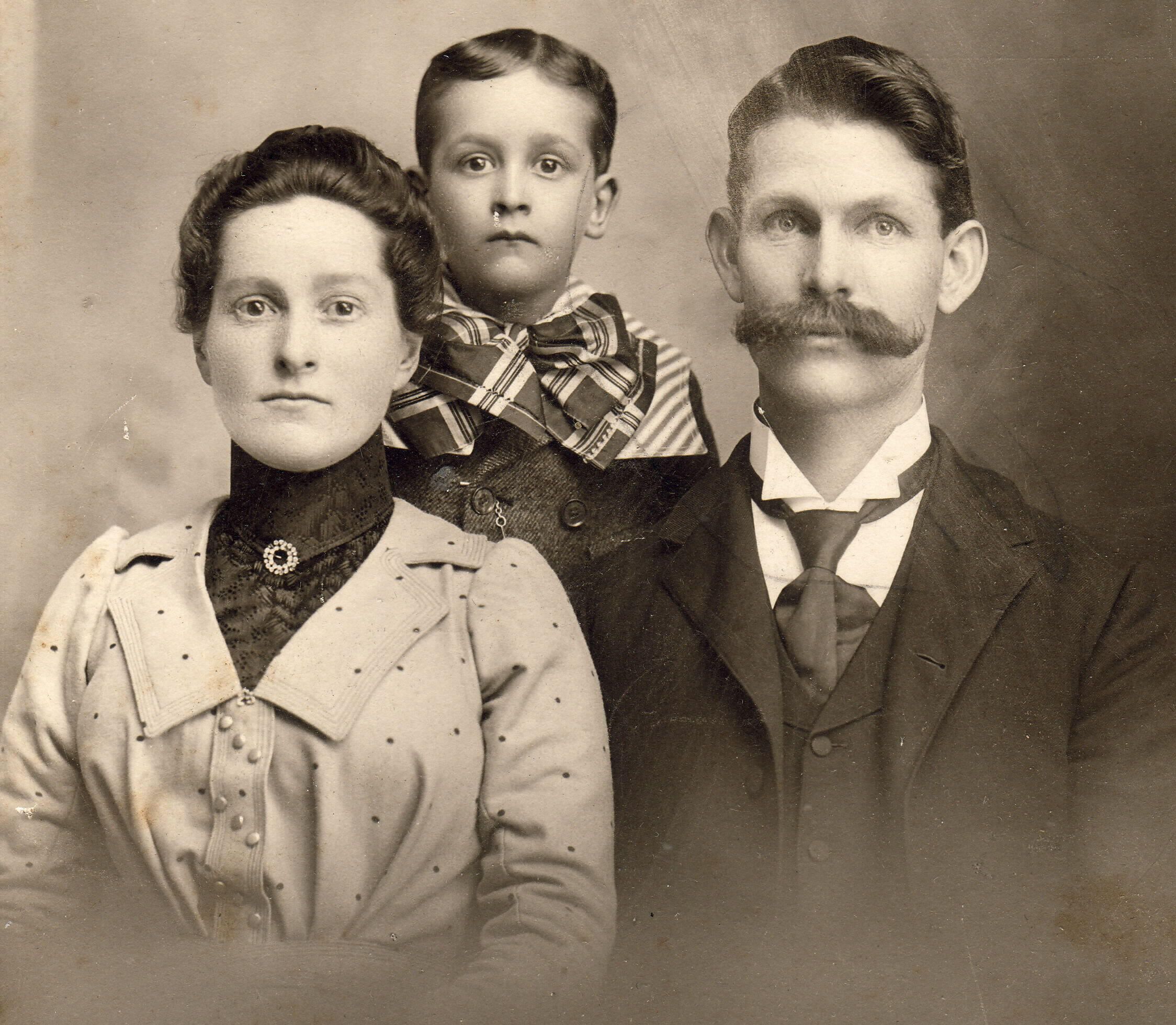 Source Citation: Thomas F. Spragg with first wife, Etta Viola (Cook) Spragg, and their son, Fred Spragg, item no. YEAT_AN002_0011, Spragg Series, Thelma (White) Yeager Collection, Greene Connections Archives Project (www.GreeneConnections.com).