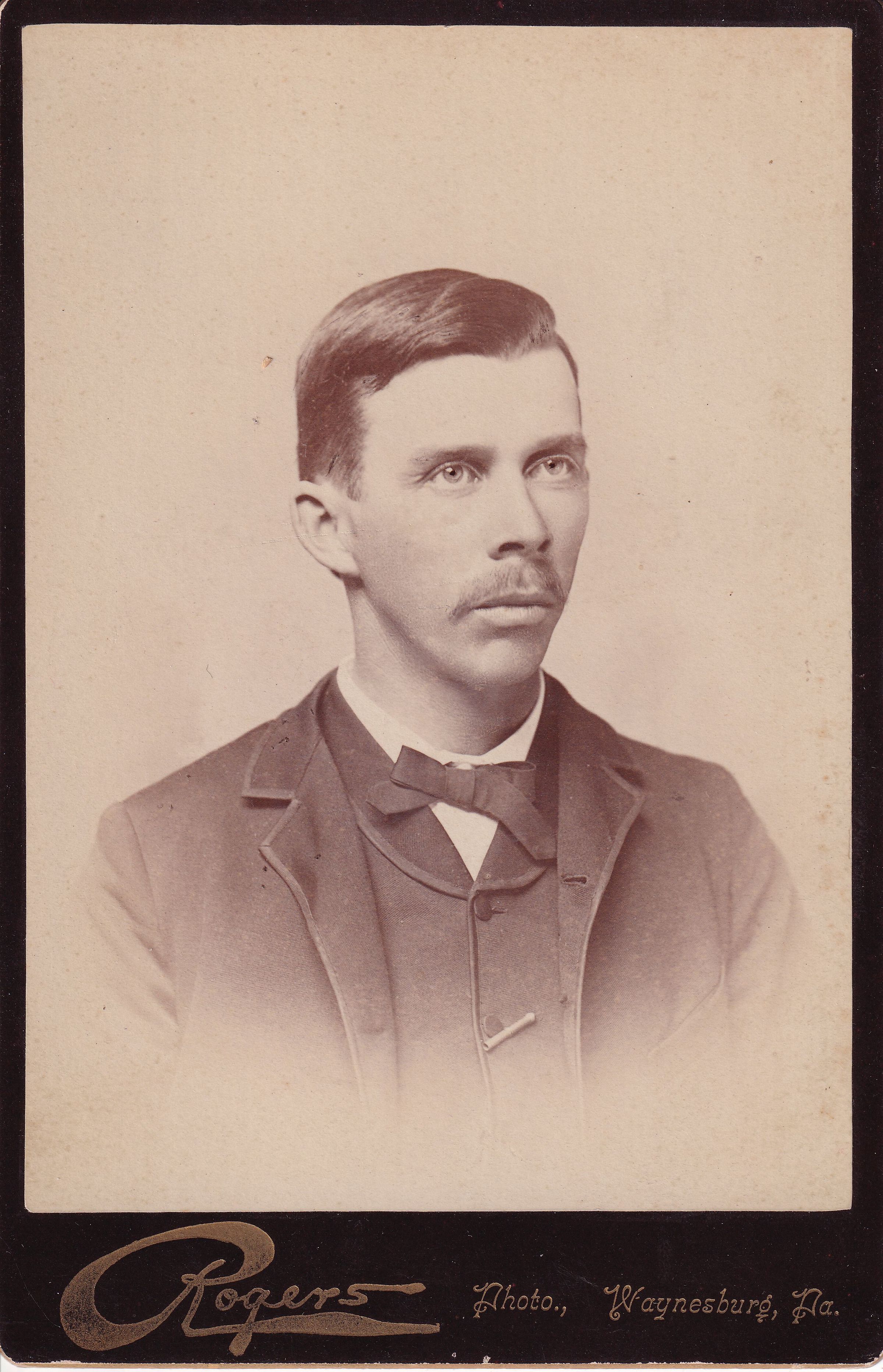 SOURCE CITATION: Thomas Gordon Inghram [1860-1940]; circa 1880-1890, image by Rogers Photo, Waynesburg, Pa.; item no. CGSP-AN016-0005, Frances Bell (Inghram) Huffman Series, donated by Cynthia Grant; Cornerstone Genealogical Society Collection; Greene Connections Archives Project (GreeneConnections.com).