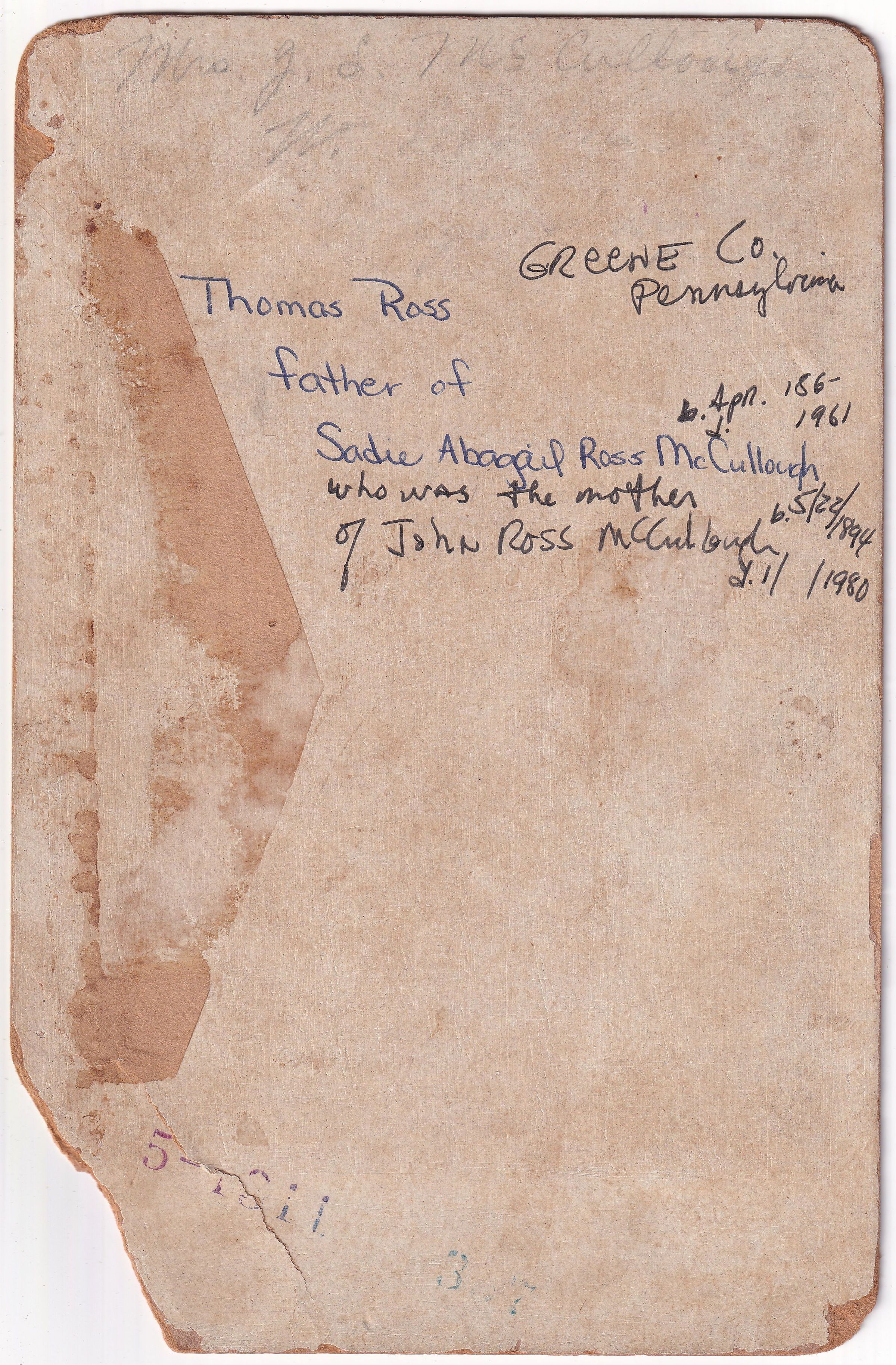 SOURCE CITATION: Thomas M. Ross [1831-1916]; circa 1880-1900; item no. CAND-AN007-0048, Candice Lynn Buchanan Collection, Greene Connections Archives Project (GreeneConnections.com).