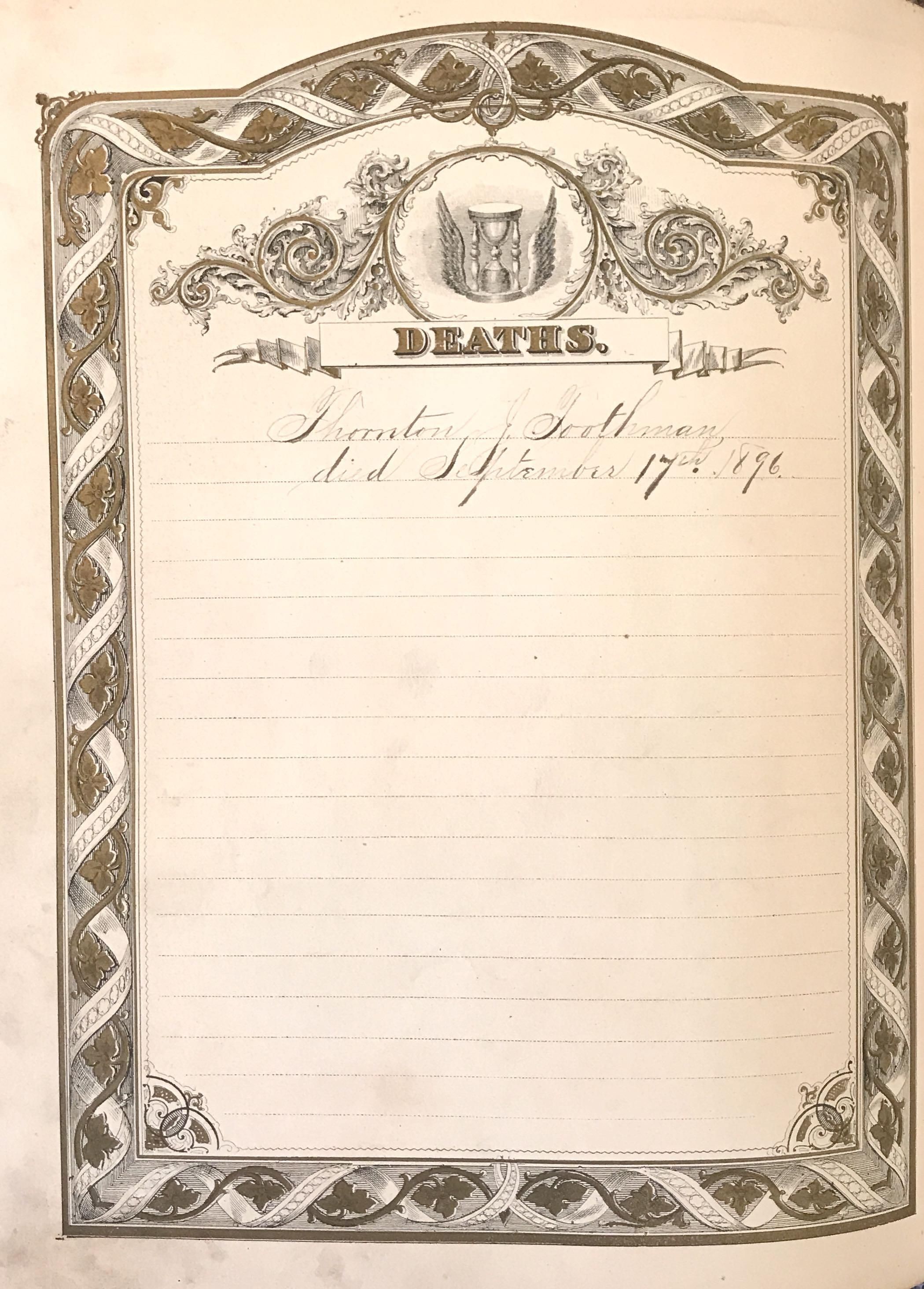 "Thornton J. Toothman / died September 17th 1896."Collection