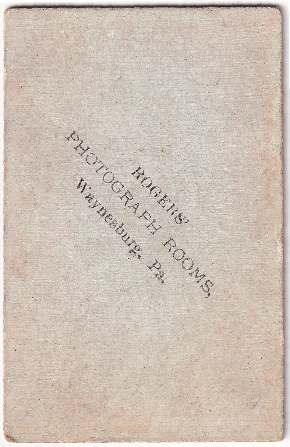SOURCE CITATION: Circa 1870-1890, image by Rogers, Photograph Rooms, Waynesburg, Pa.; item no. CGSP-AN008-0003-0015, Nellie Conklin Series, Cornerstone Genealogical Society Collection; Greene Connections Archives Project (GreeneConnections.com).