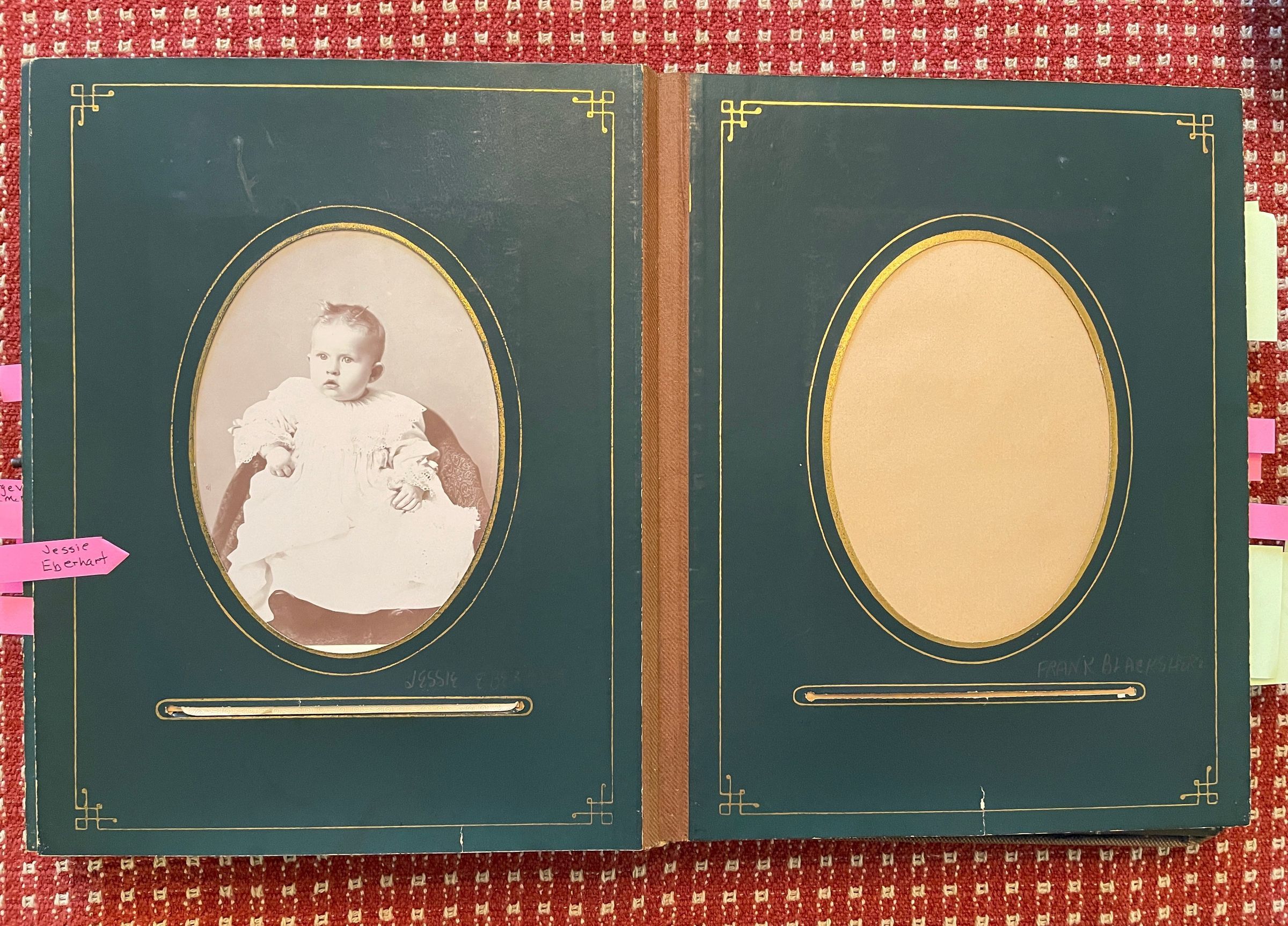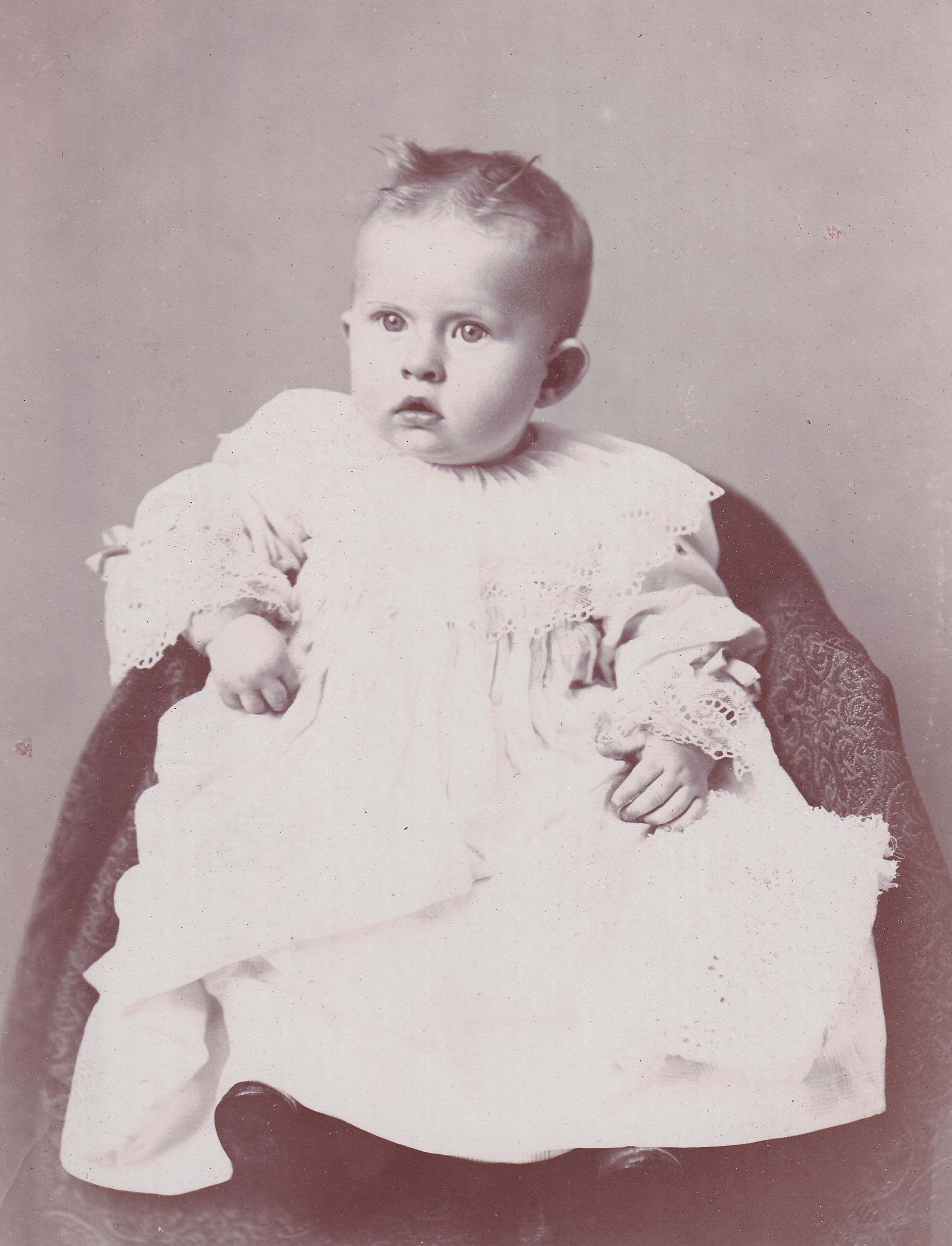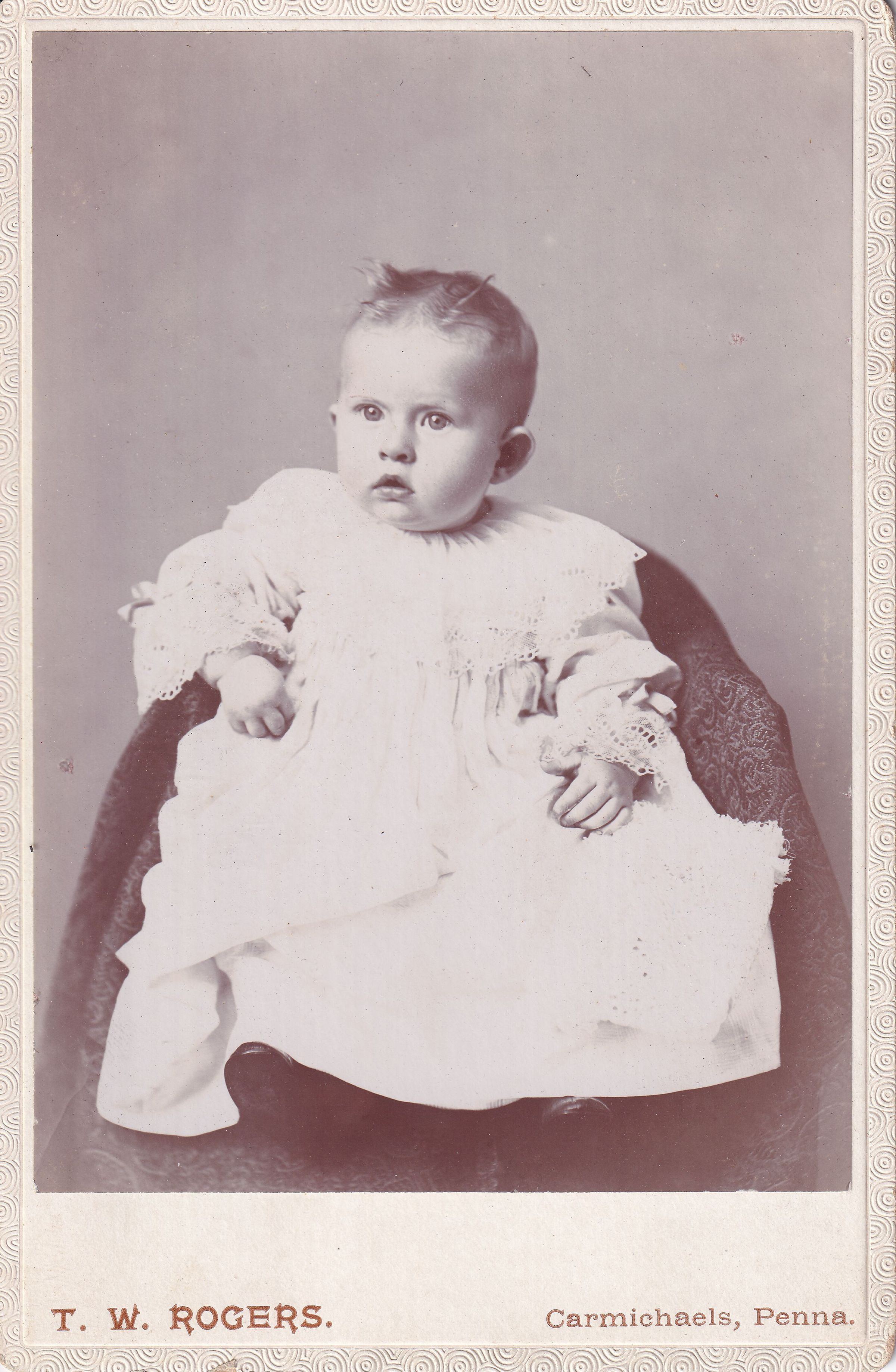SOURCE CITATION: Vance-McFarland Album 02, Photo 09 - Jessie (Eberhart) Cooper [1896-1955] - daughter of Christian Eberhart and Margaret Alice Vance; circa 1896-1897, image by T. W. Rogers, Carmichaels, Penna.; item no. MILB-AN001-0002-0009, Mary (Vance) McCann Collection, shared by her grandson, William Marshall Miller; Greene Connections Archives Project (www.GreeneConnections.com).