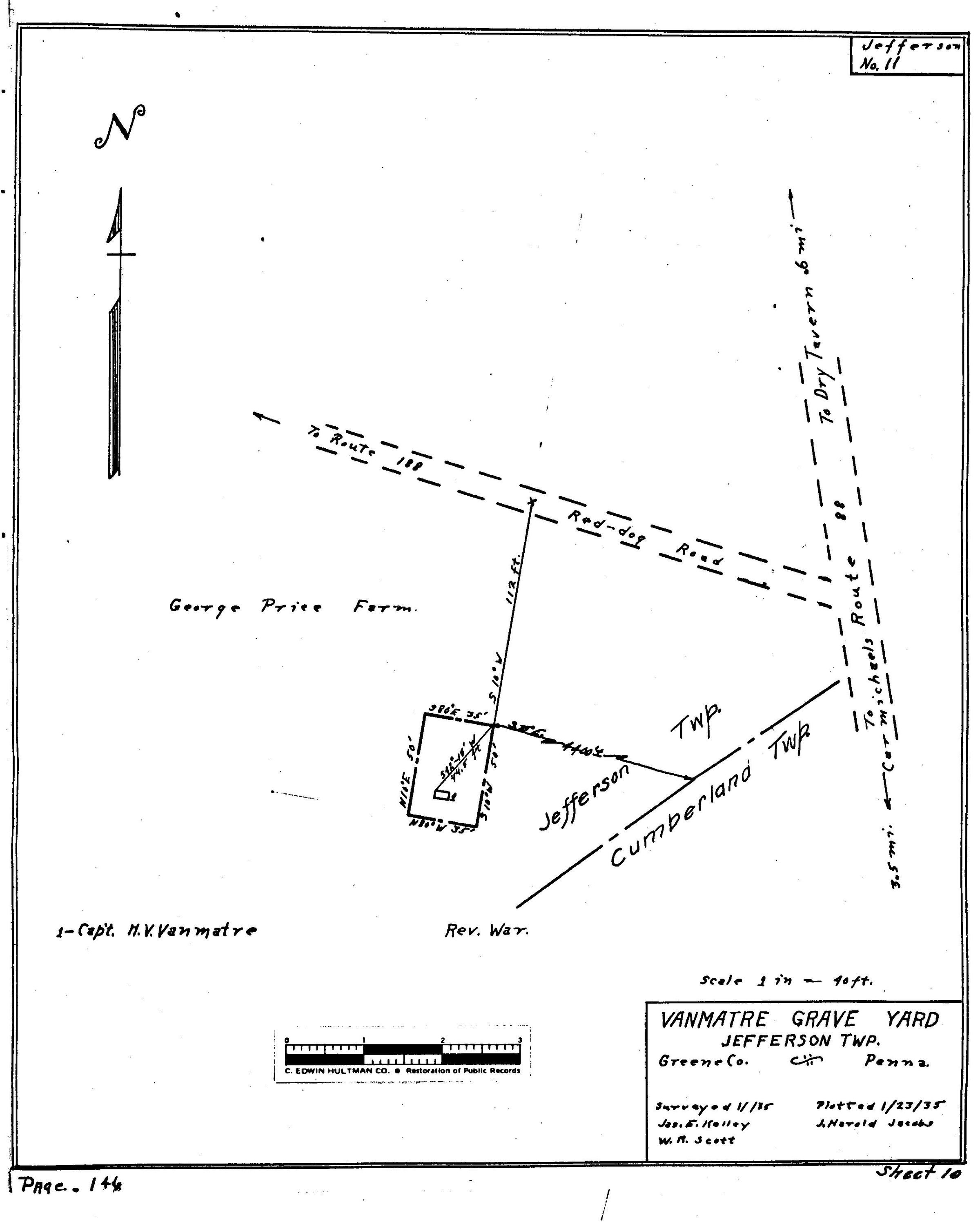 SOURCE CITATION: WPA Cemetery Plat - Pennsylvania - Greene County - Jefferson Township - Vanmeter Cemetery (1935); item no. 2016.3.376, Cemetery Plat (WPA) Collection, surveyed by Works Projects Administration, copy on file at the Clerk of Courts Office, Greene County Courthouse; Greene Connections Archives Project (GreeneConnections.com).