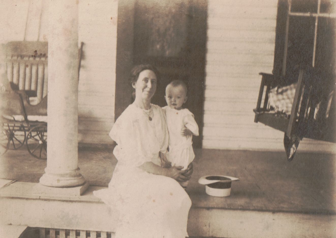 SOURCE CITATION: Velma (Meek) Carpenter [1885-1966] holding her son, Charles Leslie Carpenter [1915-1981]; circa 1915; item no. CARP-AN005-0030, Sellers Burdette and Bettie (Blake) Carpenter Collection, shared by their heirs; Greene Connections Archives Project (GreeneConnections.com).