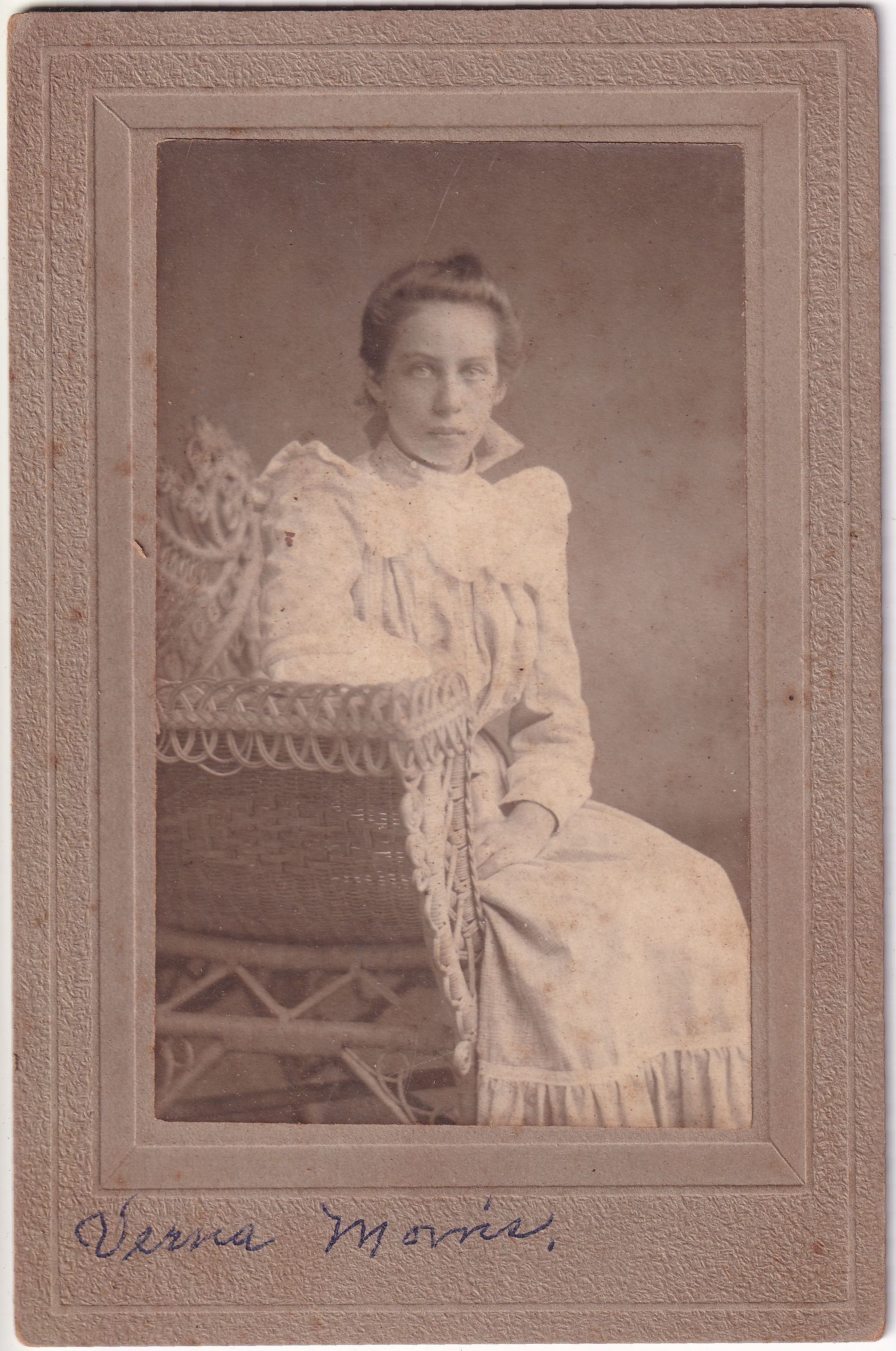 SOURCE CITATION: Verna Morris; circa 1900-1920; item no. MORS-AN001-0005, Morris Series, Ruth Cecilia (Morris) (Shultz) Minor Collection; Greene Connections Archives Project (GreeneConnections.com).