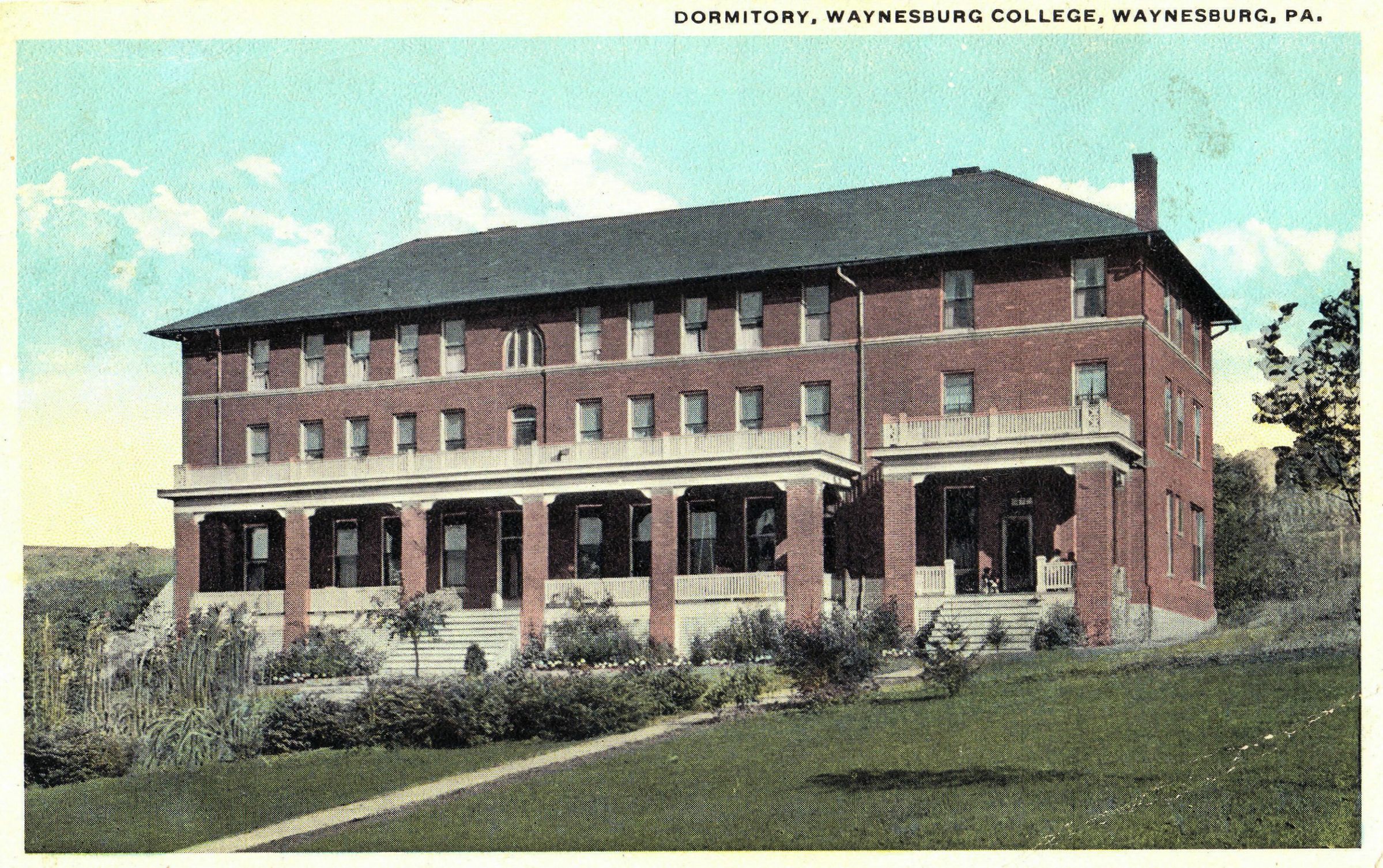 Postcard of Walton Hall, a women's dormitory on the Waynesburg College campus, in Waynesburg, Greene County, Pennsylvania.