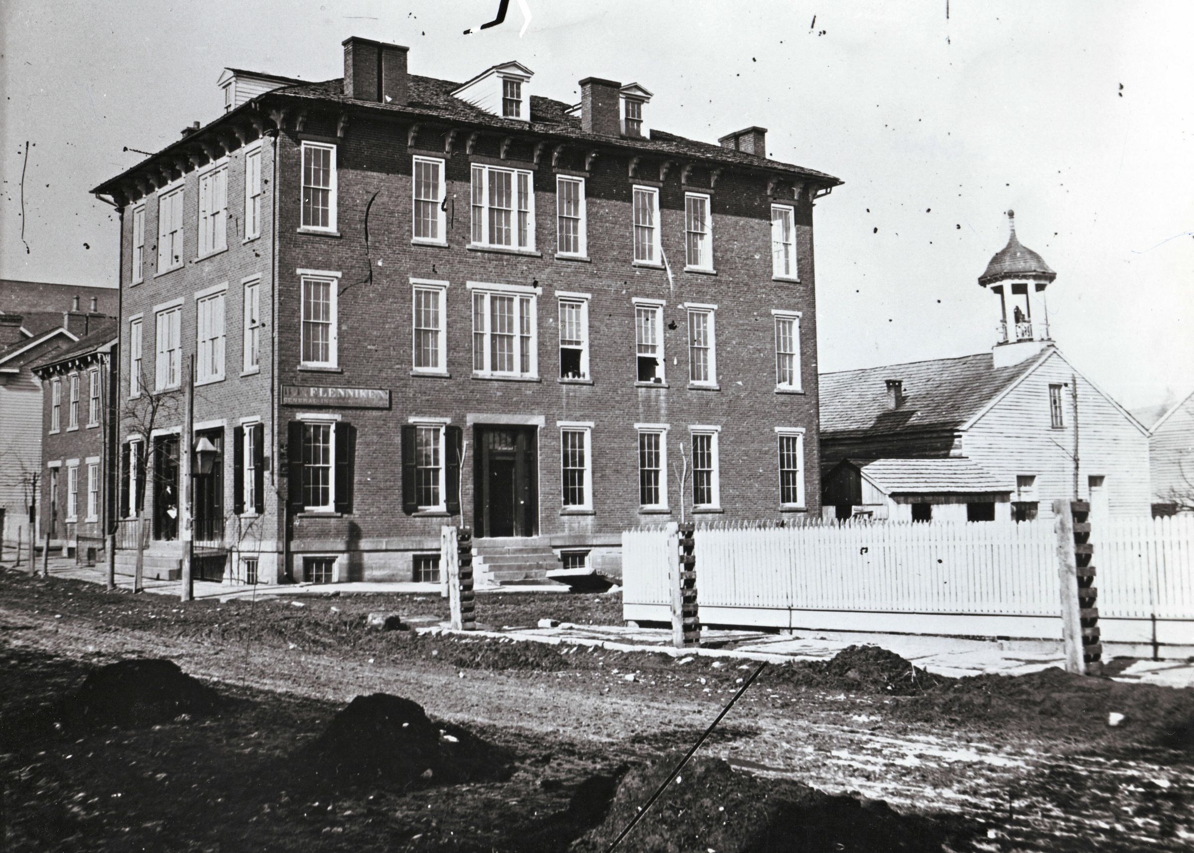 Source Citation: Walton Hotel and Presbyterian Church on the northwest corner of High and Morris Streets in Waynesburg, item no. GCHS-AN027-0001-0093, Greene County Historical Society Collection, Greene Connections Archives Project (www.GreeneConnections.com).