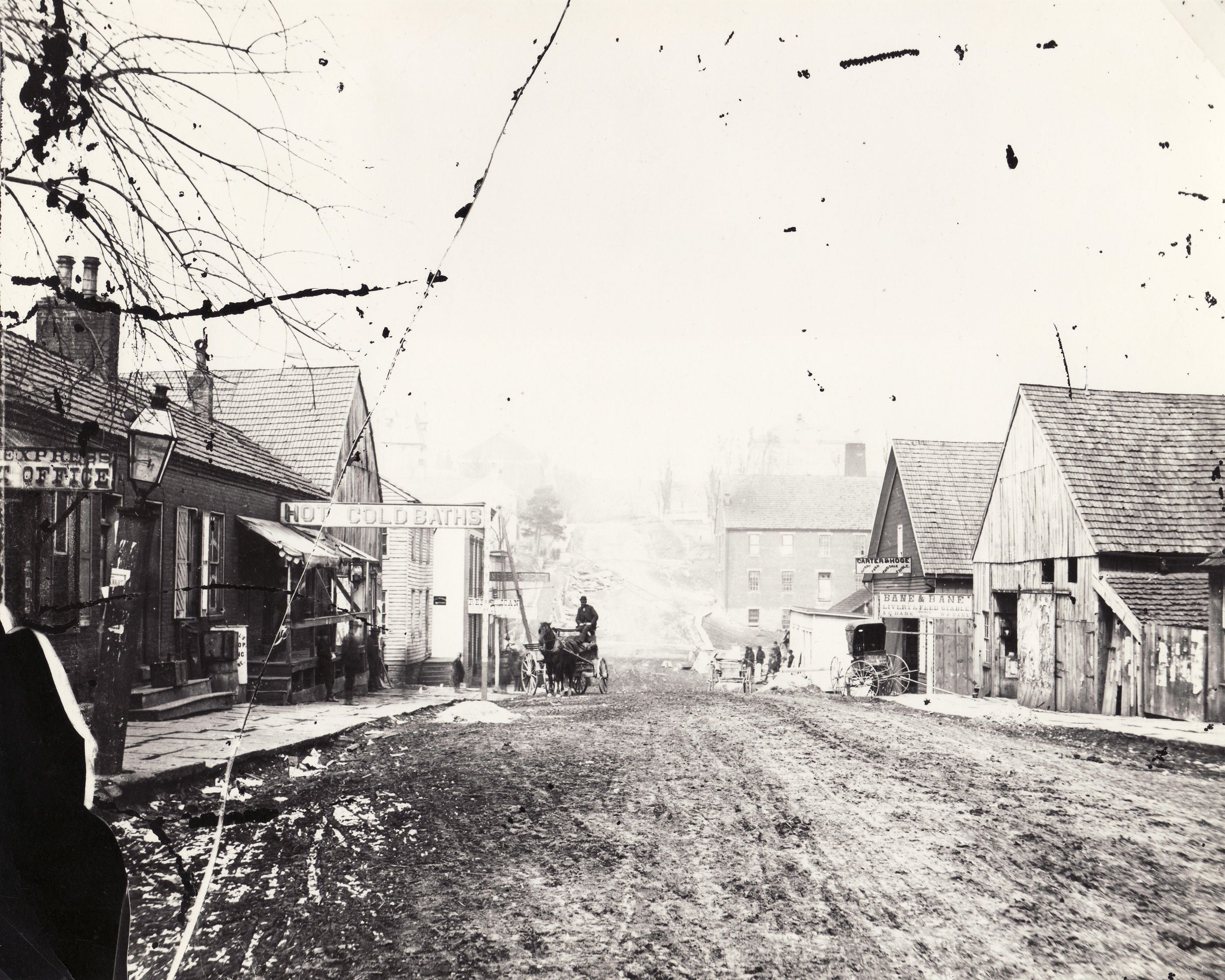 Source Citation: Washington Street (looking north from High Street) in Waynesburg, Greene County, Pennsylvania; item no. GCHS-AN027-0001-0042, Greene County Historical Society Collection; Greene Connections Archives Project (GreeneConnections.com).