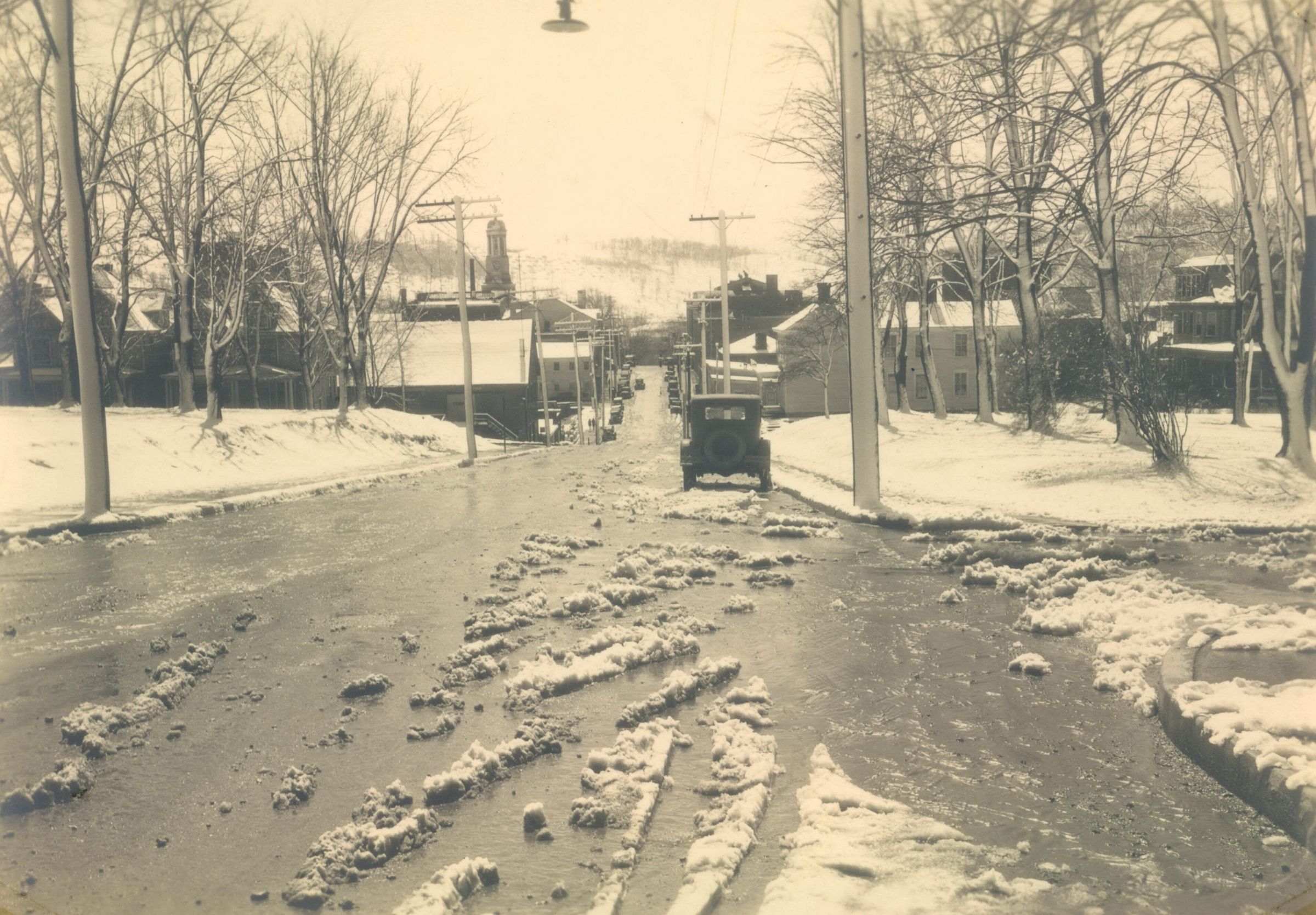 Source Citation: Washington Street (looking south from College Street, toward High Street) in Waynesburg, Greene County, Pennsylvania, photograph by William E. S. Fletcher, item no. CGSP_AN007_0025, Cornerstone Genealogical Society Collection, Greene Connections Archives Project (www.GreeneConnections.com).