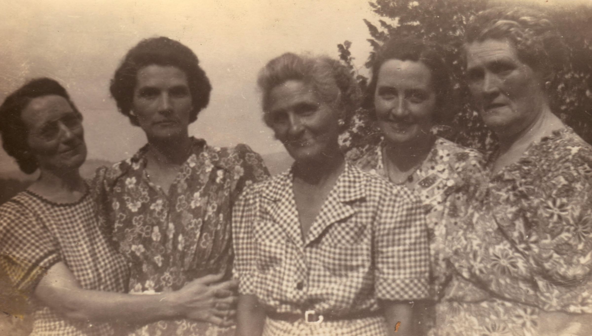 [Left-Right]: Nellie (Horn) Watson, Rheba Pearl (Doty) Patterson, Tennie Lee (Watson) Doty, Helen Margarette (Doty) Kinder, Mary Elizabeth (Watson) Doty.