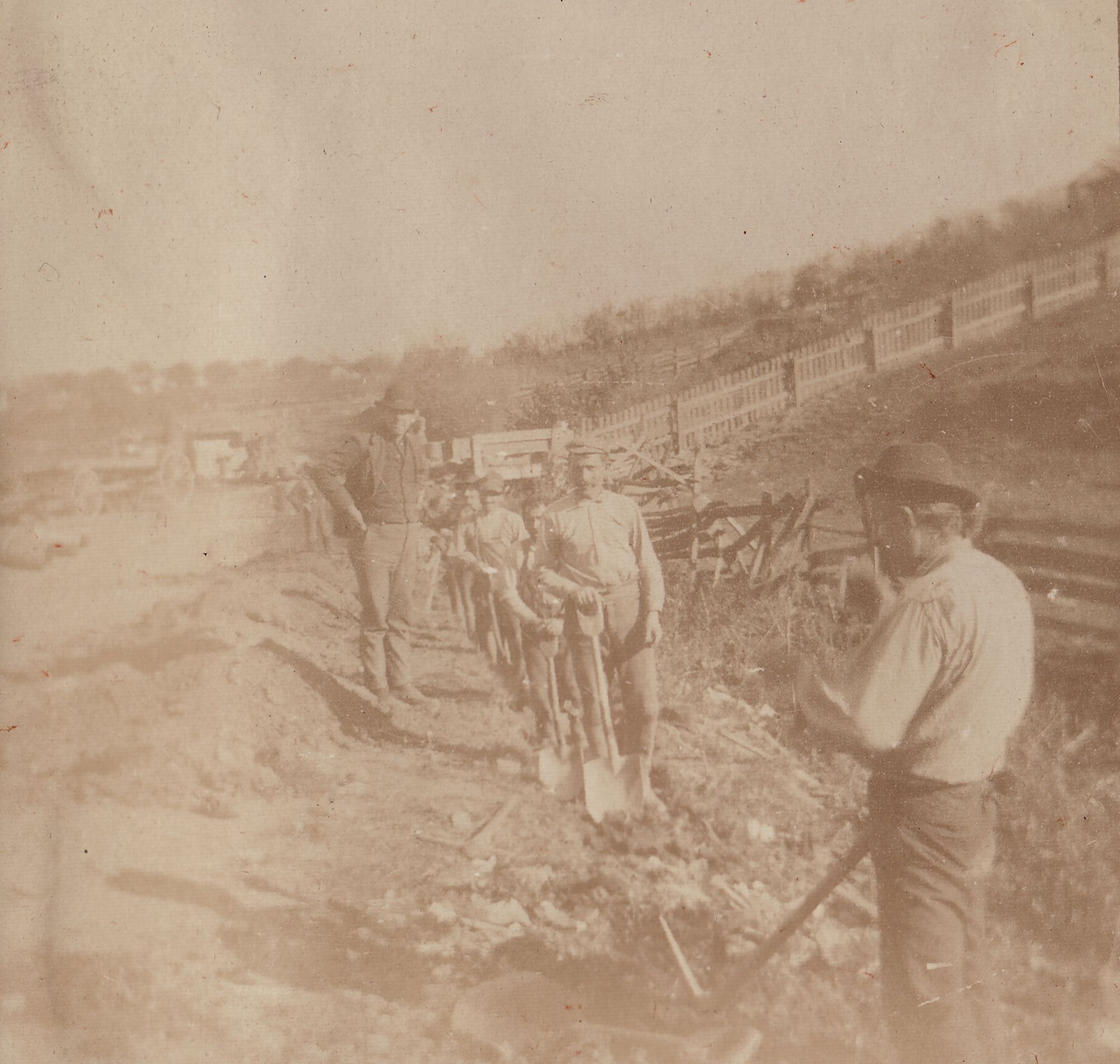 SOURCE CITATION: Waynesburg Album, Photo 08 - Road work in Greene County, Pennsylvania; circa 1903; item no. GCHS-AN031-0001-0008, George David Jenkins Series, Greene County Historical Society Collection; Greene Connections Archives Project (GreeneConnections.com).
