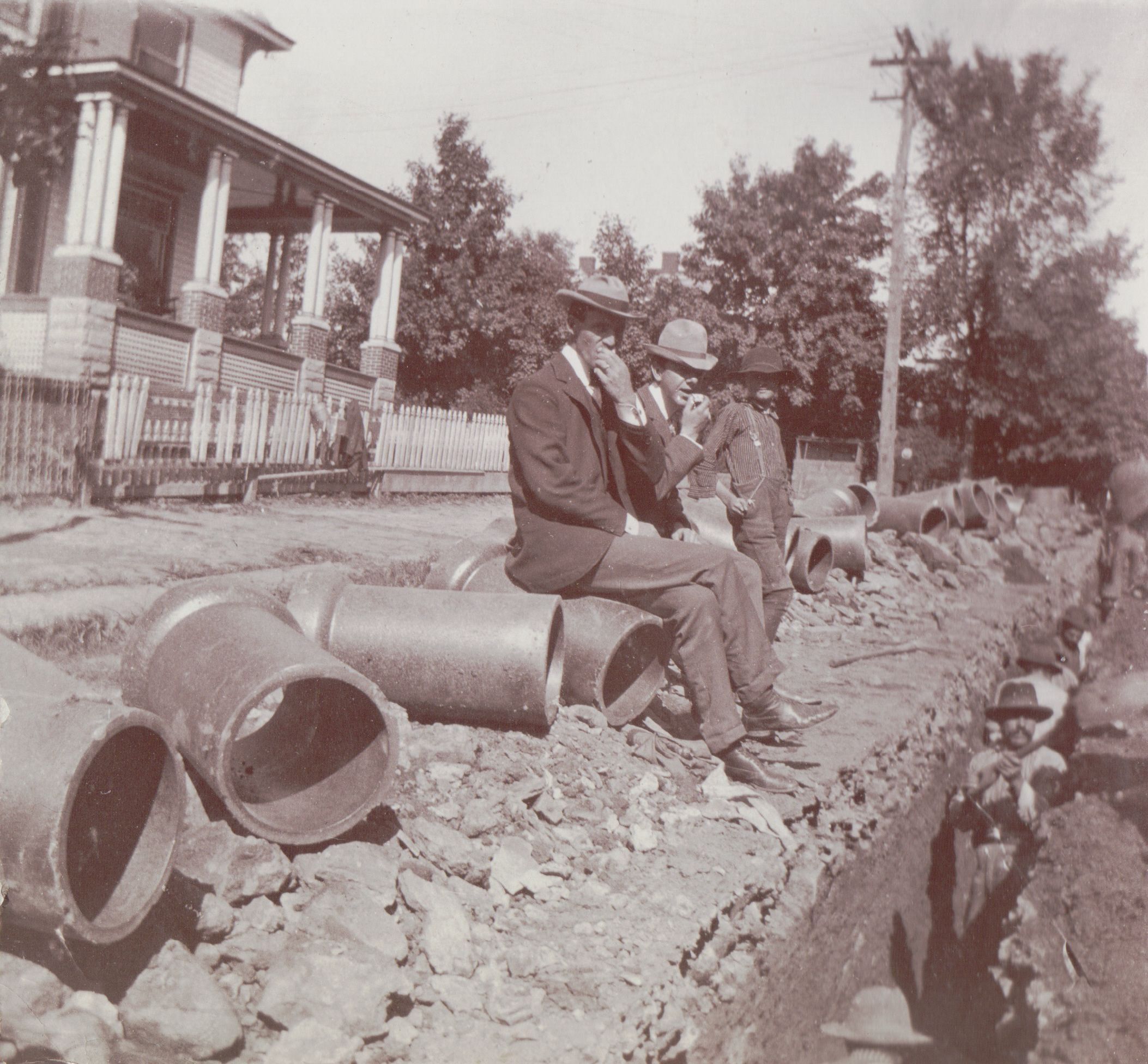 SOURCE CITATION: Waynesburg Album, Photo 28 - Sewer line being laid along Richhill Street in Waynesburg, Greene County, Pennsylvania; circa 1905; item no. GCHS-AN031-0001-0028, George David Jenkins Series, Greene County Historical Society Collection; Greene Connections Archives Project (GreeneConnections.com).