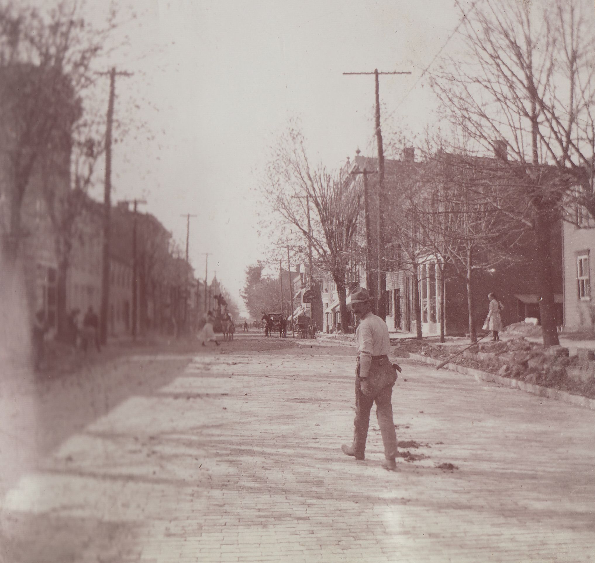 This photograph is included in an early-1900s album once owned by George David Jenkins [1868-1936]. Jenkins was elected Waynesburg Borough Engineer in 1900 and oversaw the installation of sewer systems and the brick-paving of roads in town. Jenkins' album follows the progress of the projects, providing an incredible pictorial account of the modernization. The album also includes candids of the Jenkins' family, as well as their friends. On 16 March 1912, Jenkins married Irene Ray [1882-1965], daughter of Hon. Joseph Warren Ray and Henrietta Iams.
