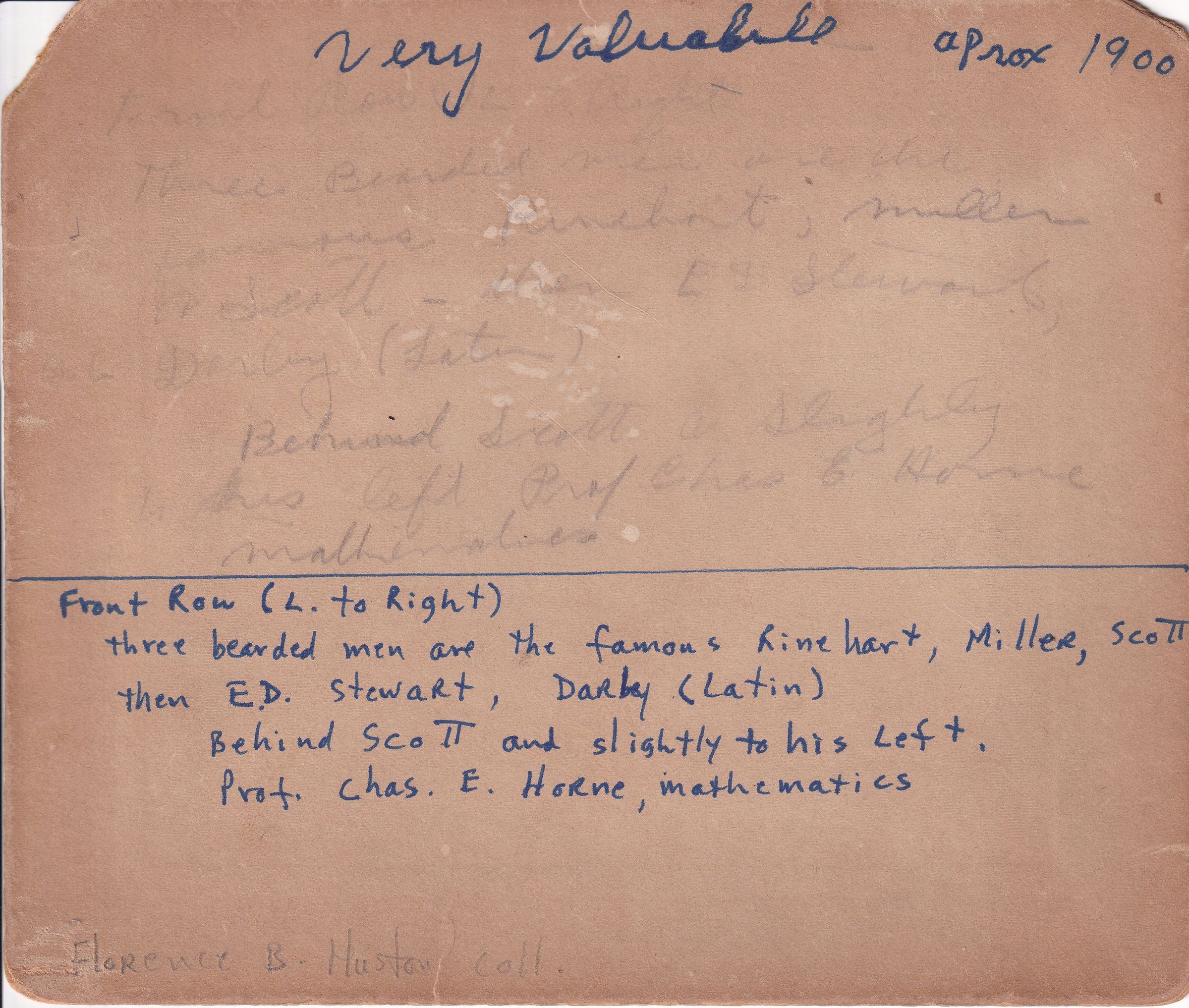 SECOND ROW - Professor James Richard Rinehart [1832-1910], Professor James Miles Blose [1860-1947], others unidentified.