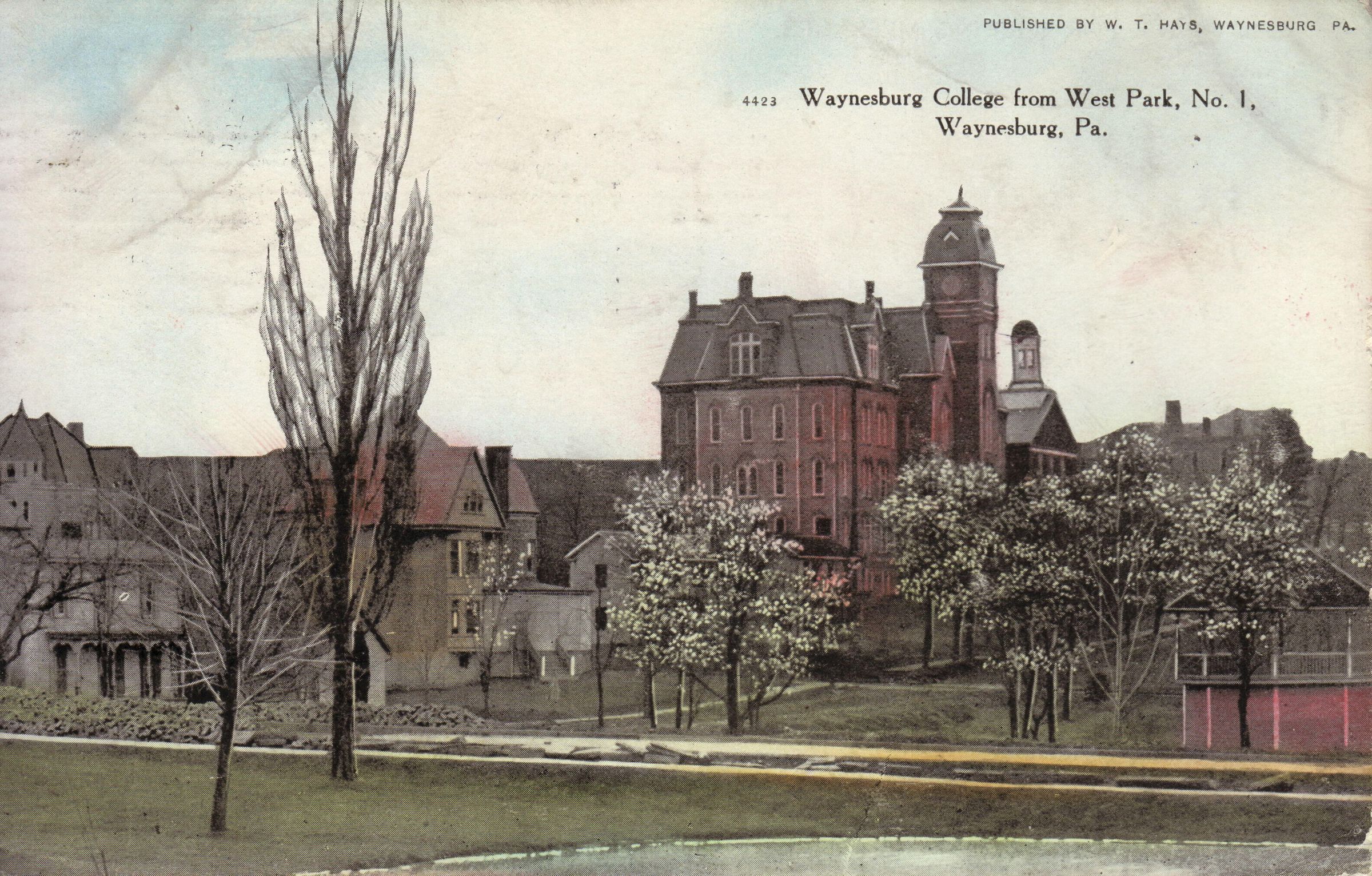 Source Citation: Waynesburg College from West Park, item no. GCHS-AN027-0001-0129, Greene County Historical Society Collection, Greene Connections Archives Project (www.GreeneConnections.com).