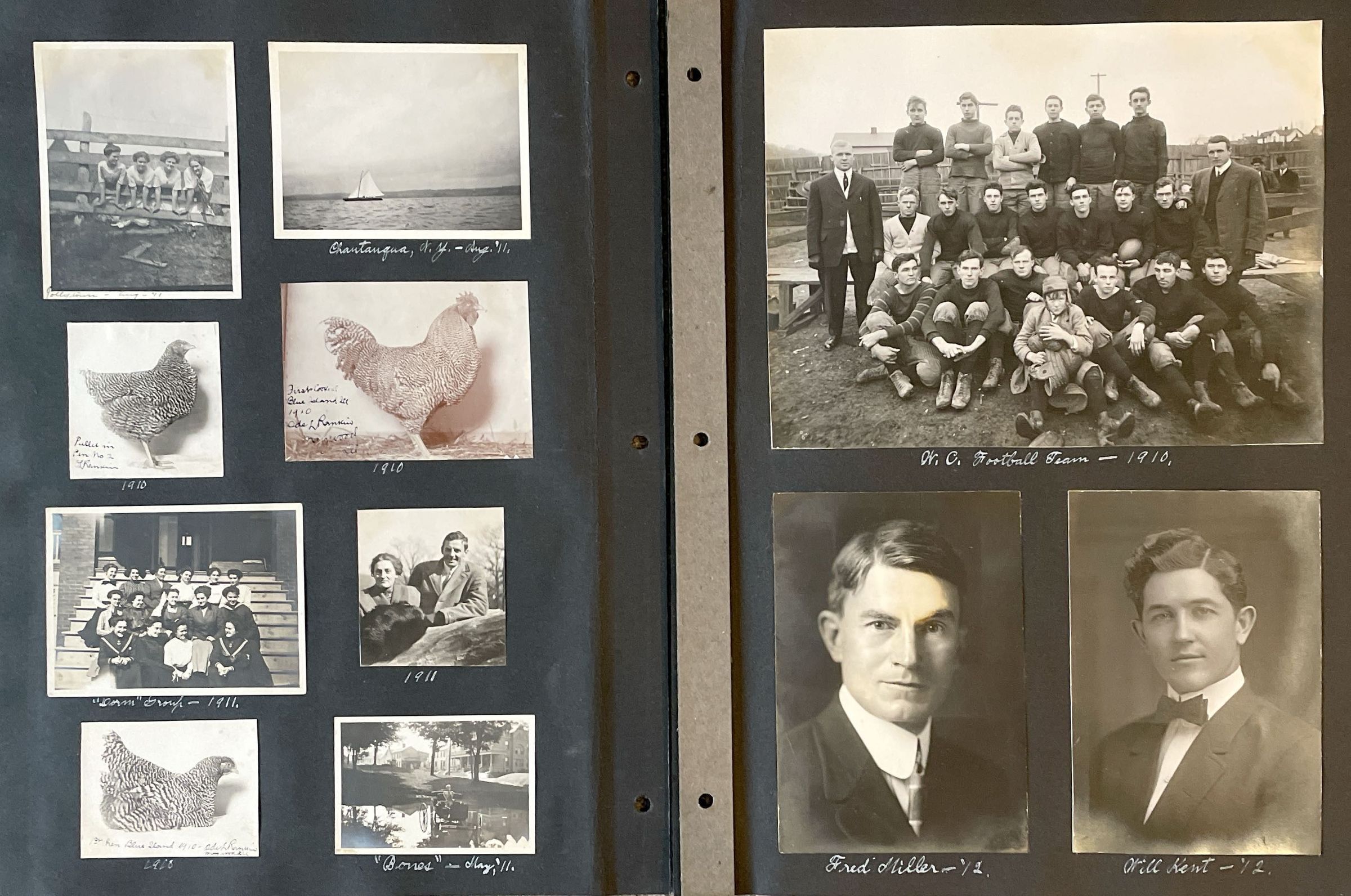 Scrapbook of Waynesburg College memories, 1910-1912, assembled by Paul Waddell Knox [1891-1965], Class of 1913. The album includes 83 images of classmates, friends, sports teams, social groups, and members of Company K, 10th Pennsylvania Volunteer Infantry, National Guard. Paul was the son of a Waynesburg College couple, Isaac Havely Knox (Class of 1889) and Theodosia Burr (Waddell) Knox (Class of 1884), who also appear in their son’s album. The album was acquired via online auction by Candice Buchanan, 2023.
