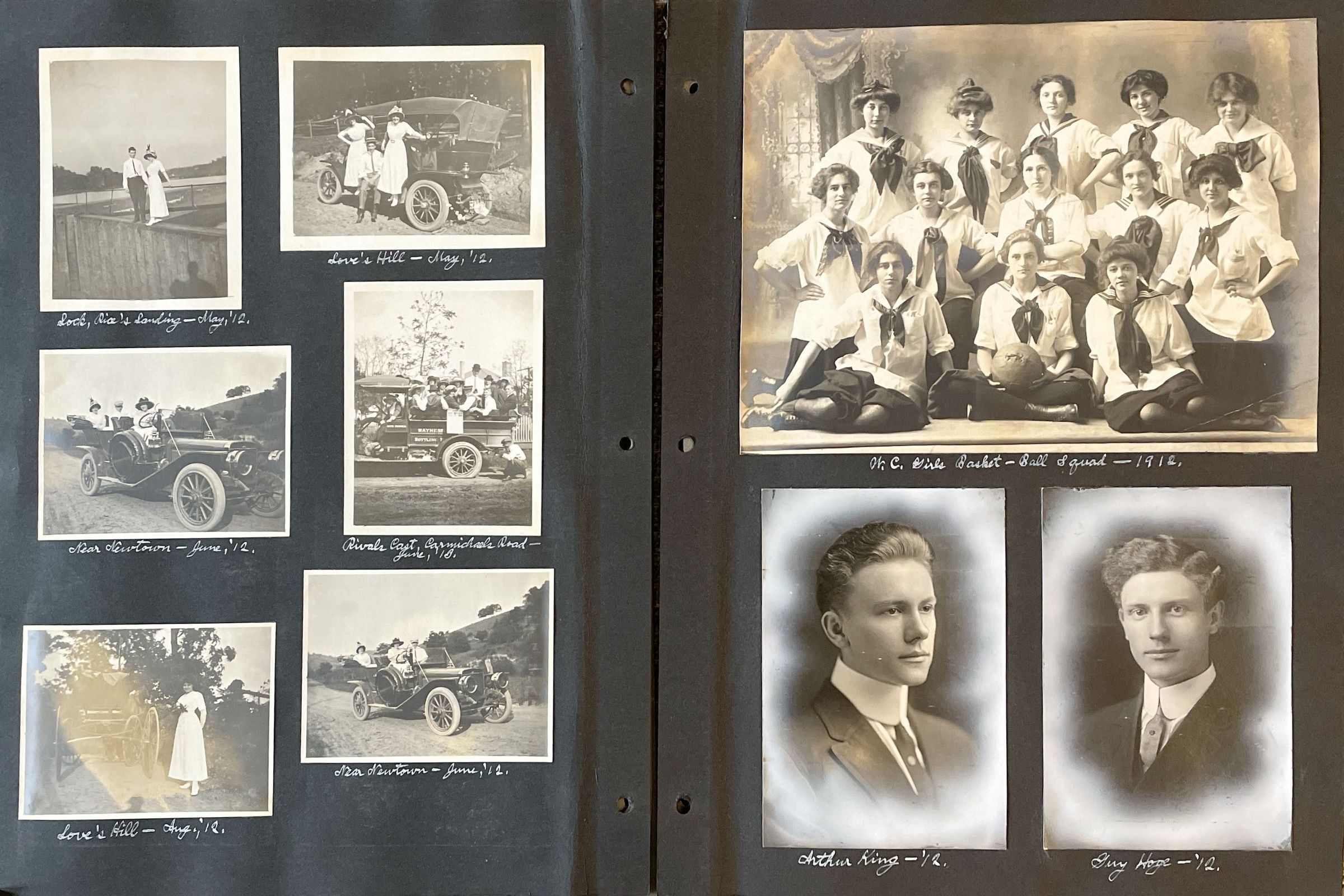 Scrapbook of Waynesburg College memories, 1910-1912, assembled by Paul Waddell Knox [1891-1965], Class of 1913. The album includes 83 images of classmates, friends, sports teams, social groups, and members of Company K, 10th Pennsylvania Volunteer Infantry, National Guard. Paul was the son of a Waynesburg College couple, Isaac Havely Knox (Class of 1889) and Theodosia Burr (Waddell) Knox (Class of 1884), who also appear in their son’s album. The album was acquired via online auction by Candice Buchanan, 2023.