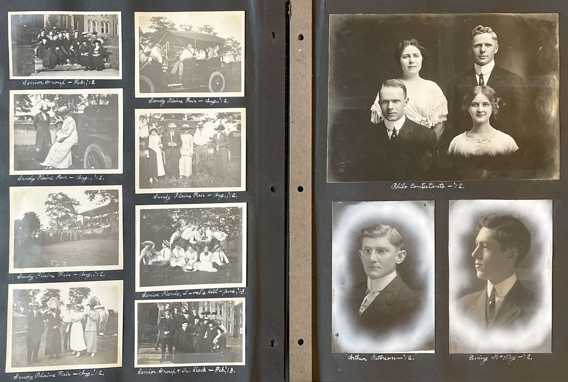 Scrapbook of Waynesburg College memories, 1910-1912, assembled by Paul Waddell Knox [1891-1965], Class of 1913. The album includes 83 images of classmates, friends, sports teams, social groups, and members of Company K, 10th Pennsylvania Volunteer Infantry, National Guard. Paul was the son of a Waynesburg College couple, Isaac Havely Knox (Class of 1889) and Theodosia Burr (Waddell) Knox (Class of 1884), who also appear in their son’s album. The album was acquired via online auction by Candice Buchanan, 2023.