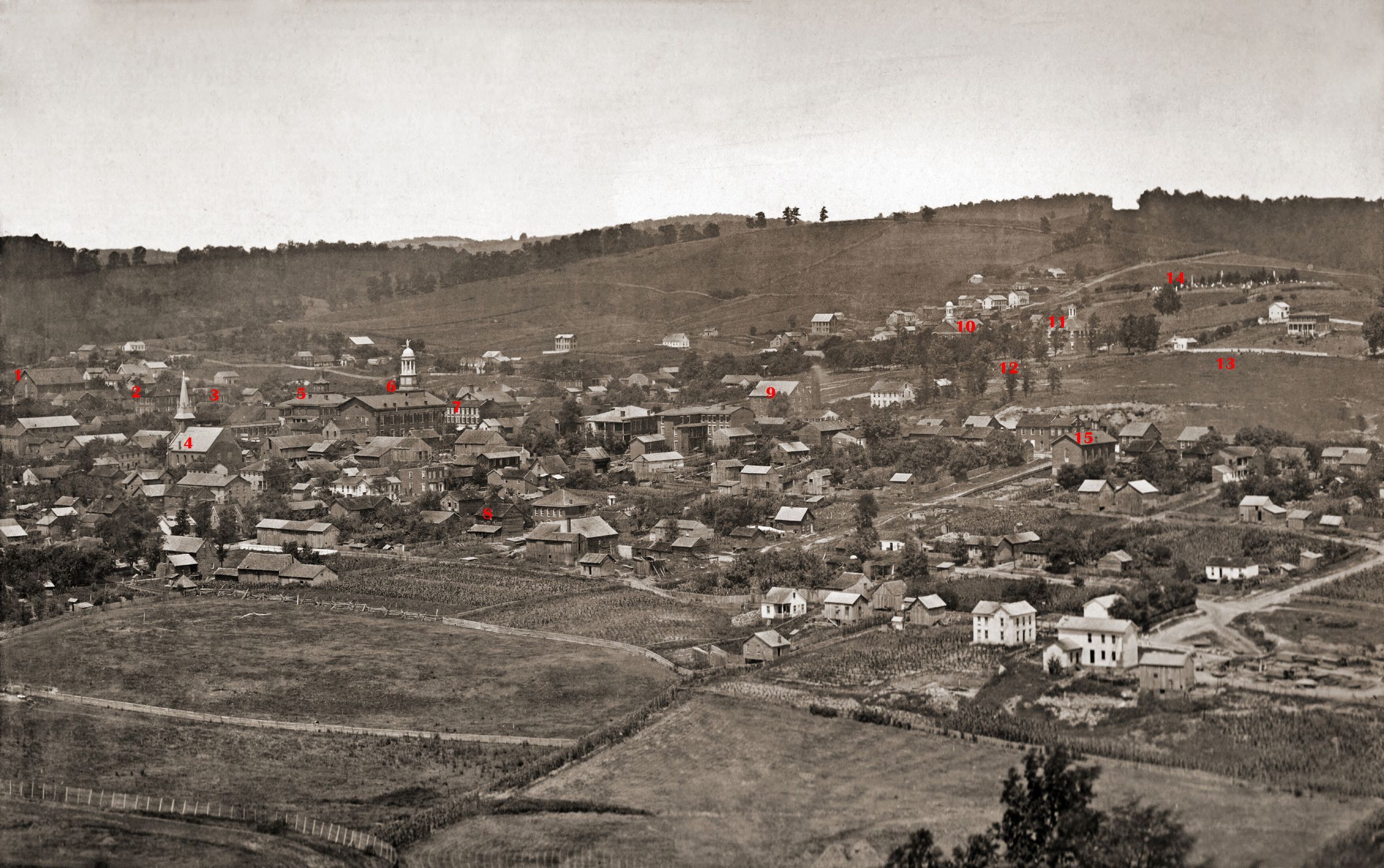 Cemeteries--Tombstones, Greene County Courthouse (Waynesburg, Pa.), Waynesburg (Pa.)--Business--Downey House, Waynesburg (Pa.)--Business--Messenger Building, Waynesburg (Pa.)--Business--Walton Hotel, Waynesburg (Pa.)--Cemeteries--Commons Cemetery, Waynesburg (Pa.)--Cemeteries--Green Mount Cemetery, Waynesburg (Pa.)--Cemeteries--Saint Ann Roman Catholic Church Cemetery, Waynesburg (Pa.)--Church buildings--Cumberland Presbyterian Church, Waynesburg (Pa.)--Church buildings--Methodist Episcopal Church, Waynesburg (Pa.)--Church buildings--Presbyterian Church, Waynesburg (Pa.)--Church buildings--Saint Ann Roman Catholic Church, Waynesburg (Pa.)--Commons, Waynesburg (Pa.)--Houses, Waynesburg (Pa.)--Parks--College Park, Waynesburg (Pa.)--Parks--Monument Park, Waynesburg (Pa.)--Parks--Ritchie Park, Waynesburg (Pa.)--Parks--West Park, Waynesburg (Pa.)--Schools--North Ward School, Waynesburg (Pa.)--Schools--Union School, Waynesburg (Pa.)--Schools--Waynesburg College--Hanna Hall, Waynesburg (Pa.)--Streets--Greene Street, Waynesburg (Pa.)--Streets--High Street, Waynesburg (Pa.)--Streets--Morris Street, Waynesburg (Pa.)--Streets--Washington Street, Waynesburg (Pa.)--Streets--Wayne Street, Waynesburg (Pa.)--Town