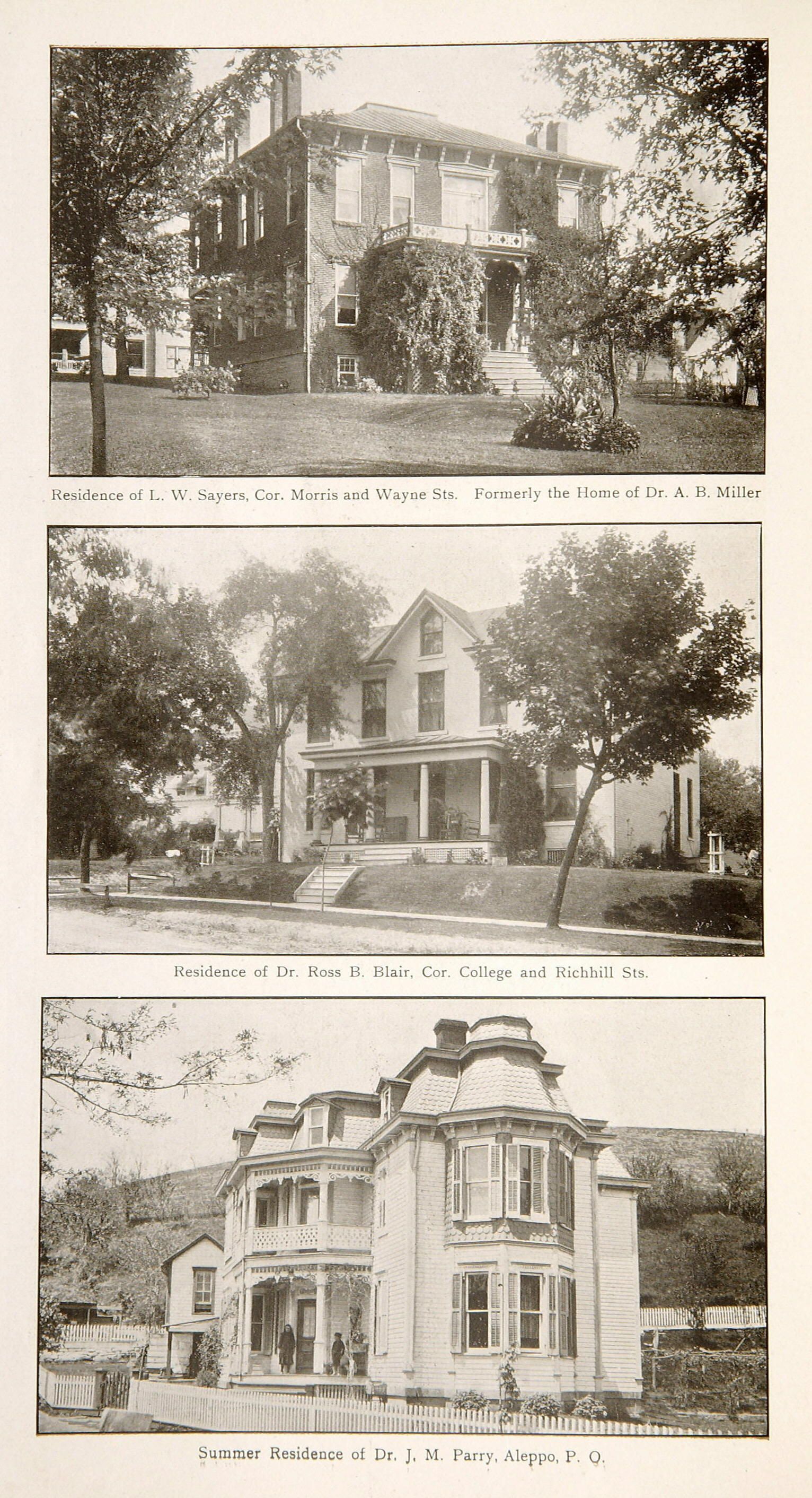 Caption reads, "Residence of L. W. Sayers, Cor. Morris and Wayne Sts. Formerly the Home of Dr. A. B. Miller."