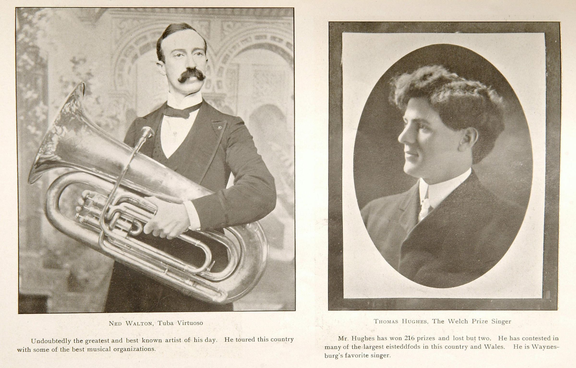 Source Citation: Fred High, Waynesburg Prosperous and Beautiful (Hamilton, Ohio: Brown & Whitaker, 1906), 103, Ned Walton, Tuba Virtuoso. Item no. PUBL-AN003-0103A, Greene Connections Archives Project (GreeneConnections.com).