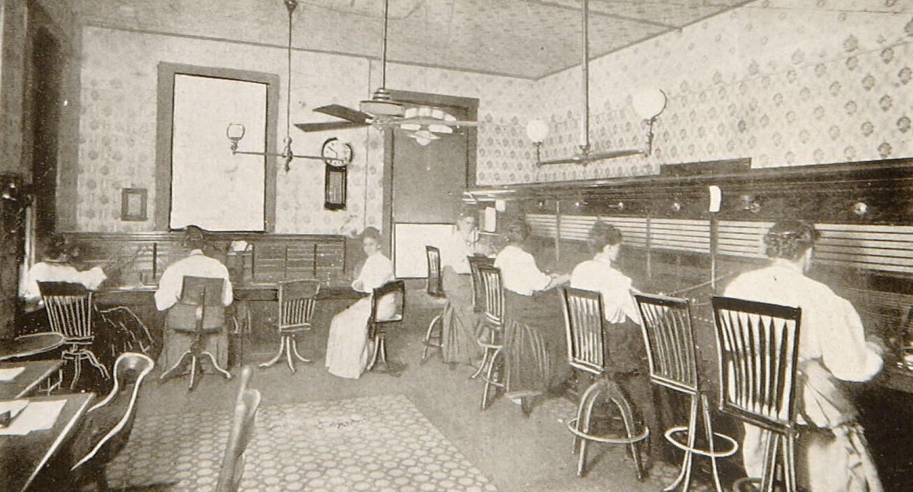 Operators in the local exchange office of the South Penn Telephone and Telegraph Company, located in the Purman-South Penn-Pollock Building at 60 West High Street, Waynesburg, Greene County, Pennsylvania.