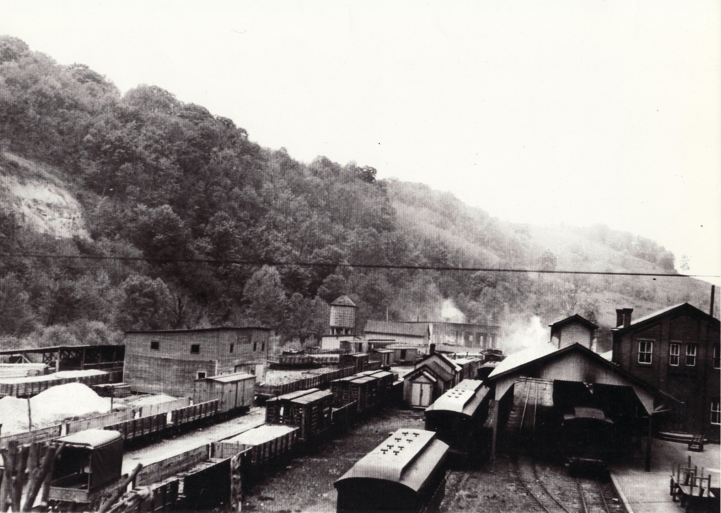 Source Citation: Waynesburg & Washington Railroad train yard, item no. GCHS-AN027-0001-0165G, Greene County Historical Society Collection, Greene Connections Archives Project (www.GreeneConnections.com).