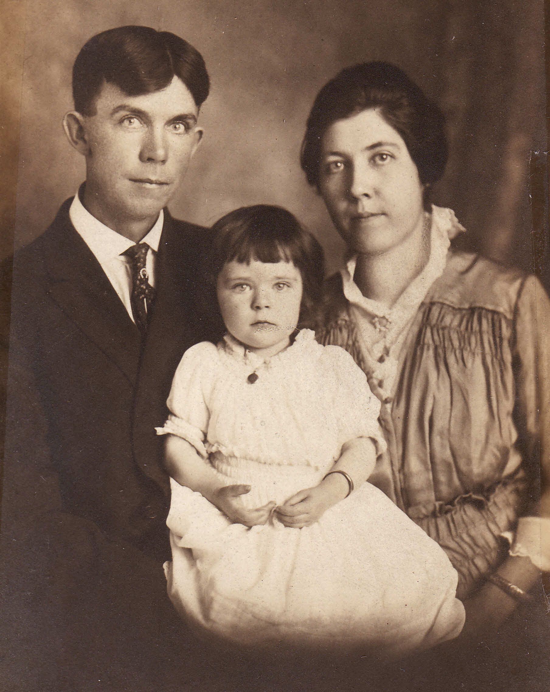 SOURCE CITATION: Wilbert Rose [1883-1964], his wife, Alice (Williams) Rose [1889-1975], and their eldest daughter, Wilma Marie Rose [1914-1977]; circa 1915; item no. HEAT_AN003_0032, Rose Series, Thomas Headlee Collection; Greene Connections Archives Project (GreeneConnections.com).