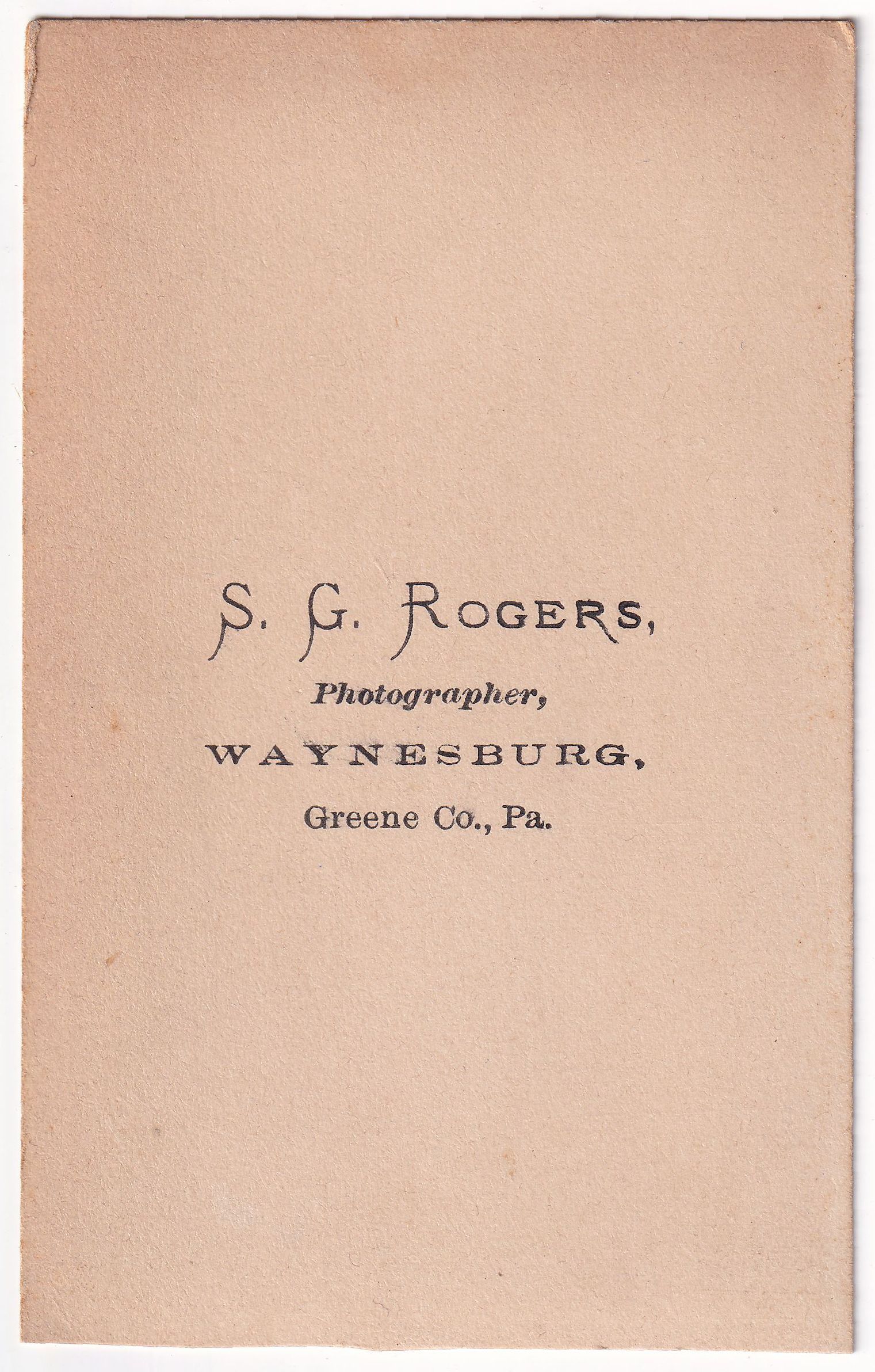 Original, professional photograph from S. G. Rogers, Photographer, Waynesburg, Greene Co., Pa.Photograph Details