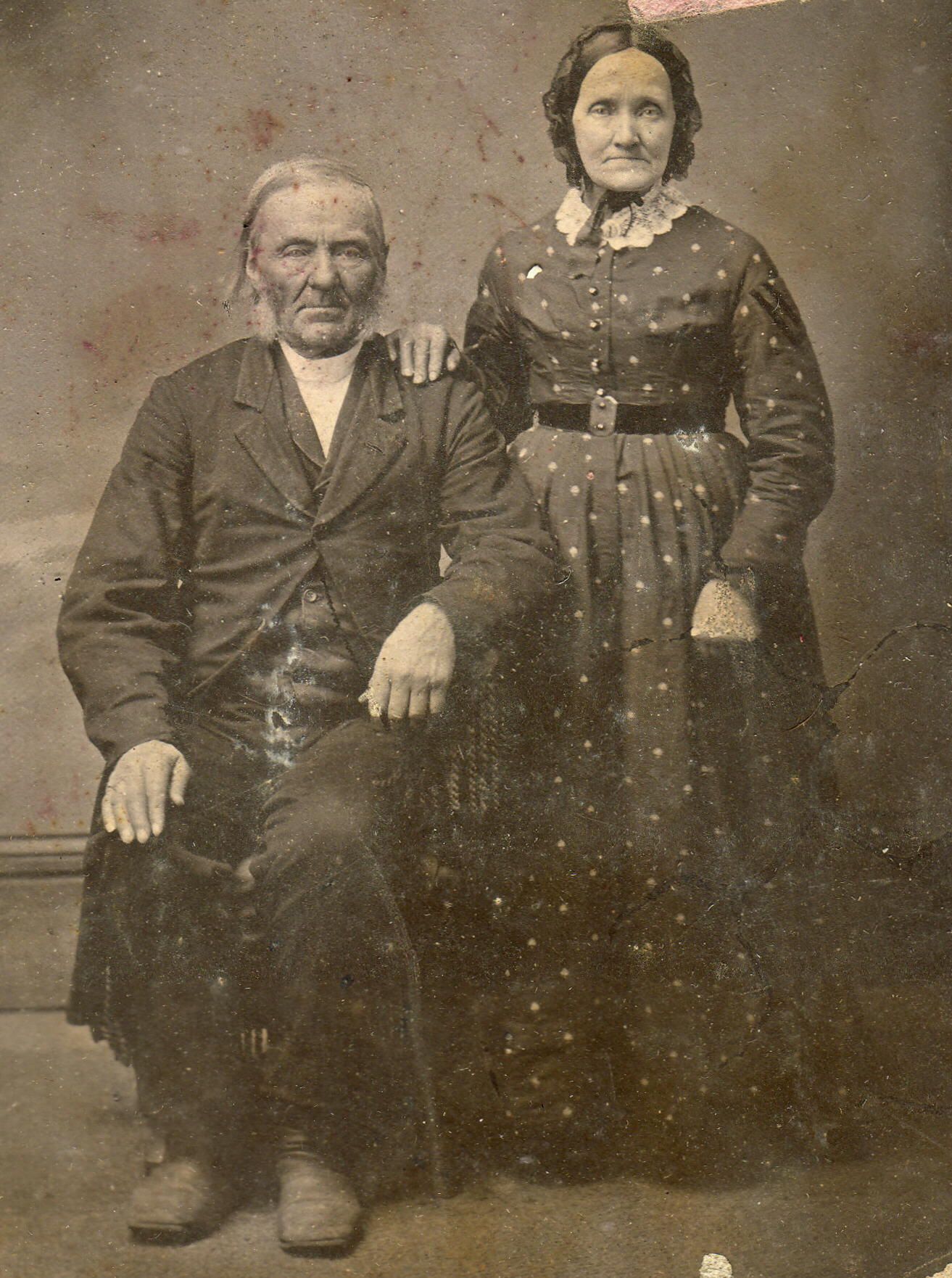 Identification as William John Spencer [1805-1889] and his wife, Elizabeth (Hedge) Spencer [1806-1883], was confirmed in 2011 by Eugenia Slaydon who also owns an original of this photograph. Eugenia is a descendant of the couple through their son William "Taylor" Spencer.Collection