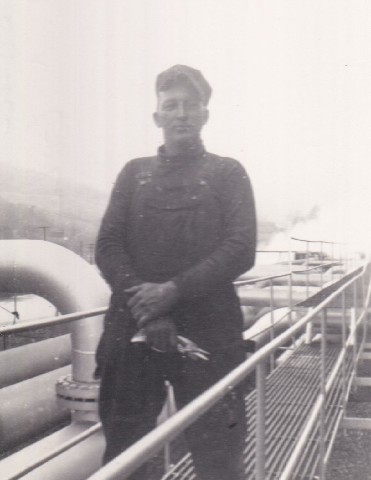 SOURCE CITATION: William Leon Cole [1904-1997] - employee at the Brave Pumping Station in Brave, Wayne Township, Greene County, Pennsylvania; circa 1945-1950; item no. CMBL-AN004-0005-0016, George Lindsey Cole Series, Matt W. Cumberledge Collection; Greene Connections Archives Project (GreeneConnections.com).