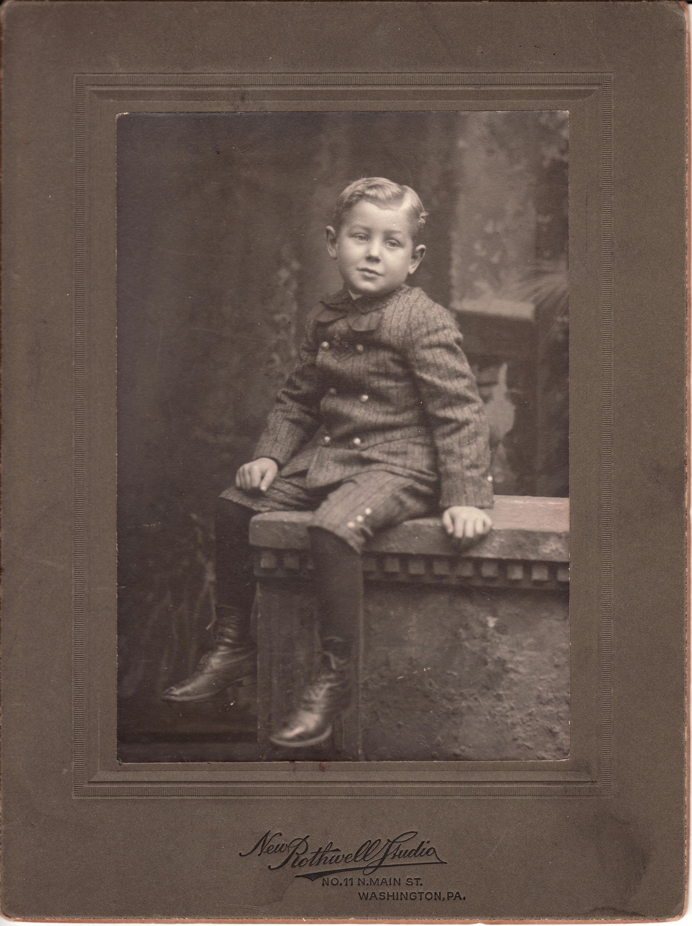 SOURCE CITATION: Willis Doyle Ruth [1900-1968] - son of Doc Elzie Ruth and Minerva Elizabeth "Lib" Supler; image by New Rothwell Studio, No. 11 N. Main St., Washington. Pa., circa 1900-1910; item no. SUPL-AN002-0017, Supler Series, Wayne Carl Swart Collection, Greene Connections Archives Project (www.GreeneConnections.com).