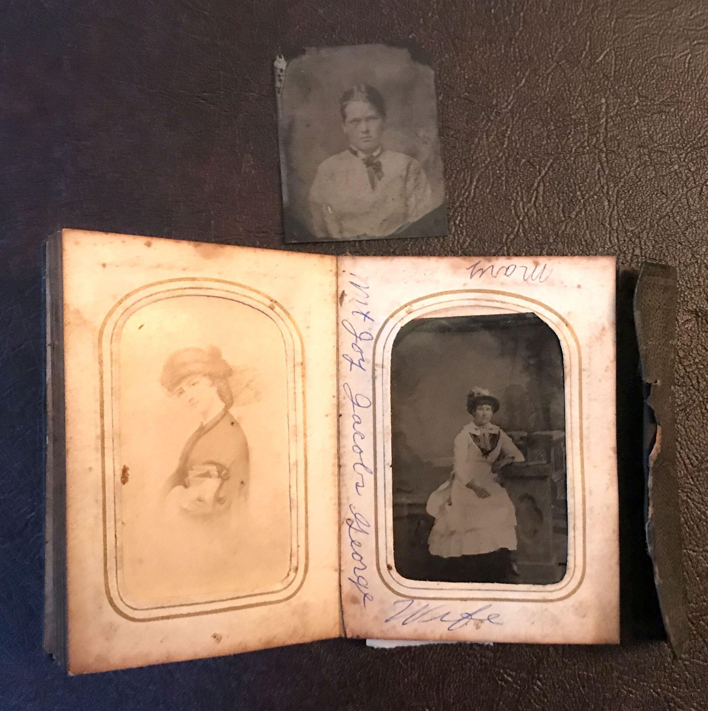 This photograph is included in a Carte-de-Visite sized photograph album that may have belonged to Sarah (Willis) Nutt [1832-1874] - wife of William Nutt, daughter of Richard Willis and Mary Swan. A piece of paper kept inside the album cover reads, "Sarah Willis Nutt / uncle Bill Nutt & Aunt." Handwritten inscriptions in the album also indicate family relationships to Sarah. It is not known how the album passed into the possession of the Moredock family, but there would certainly be numerous social and family connections that may have resulted in the transfer.