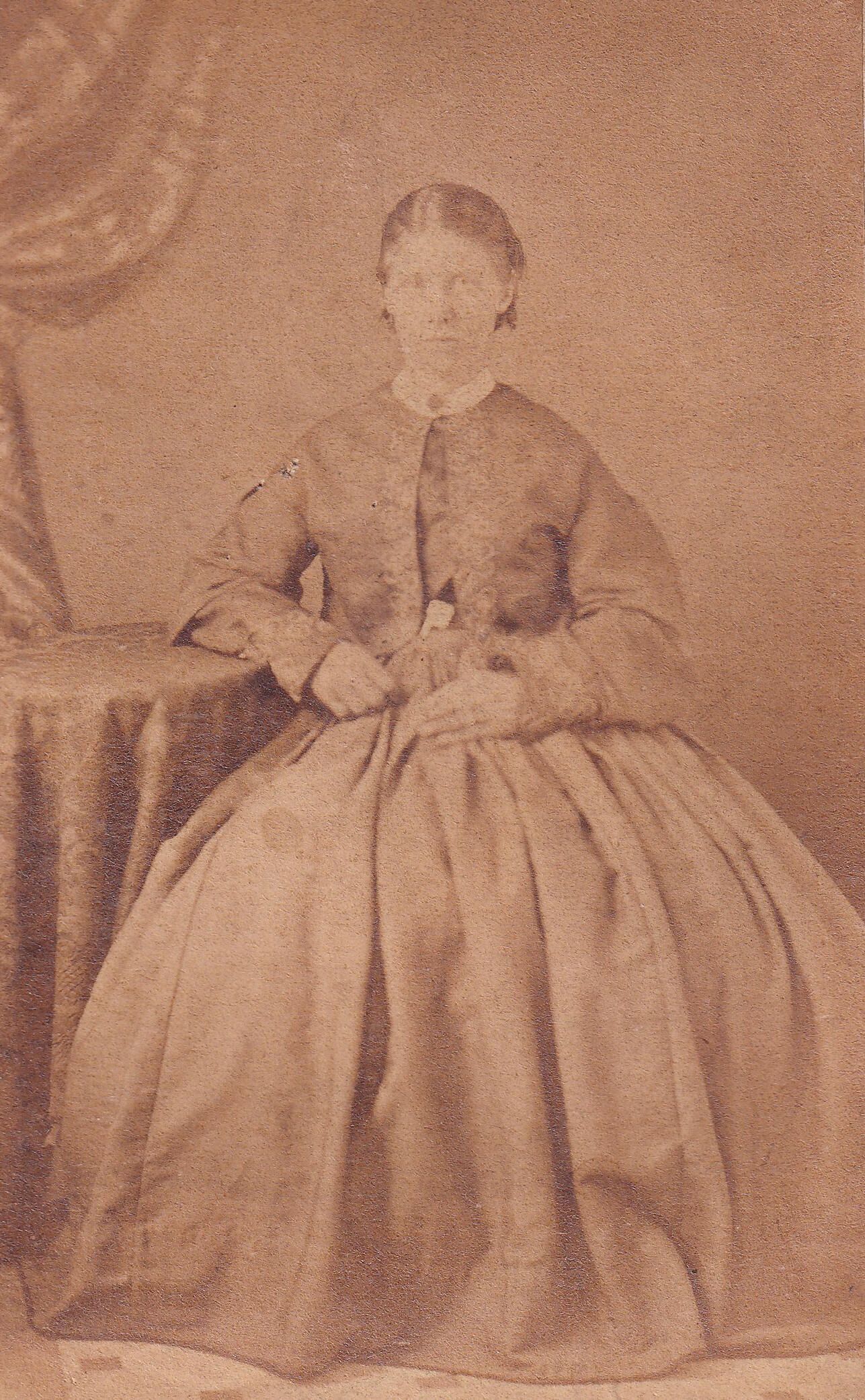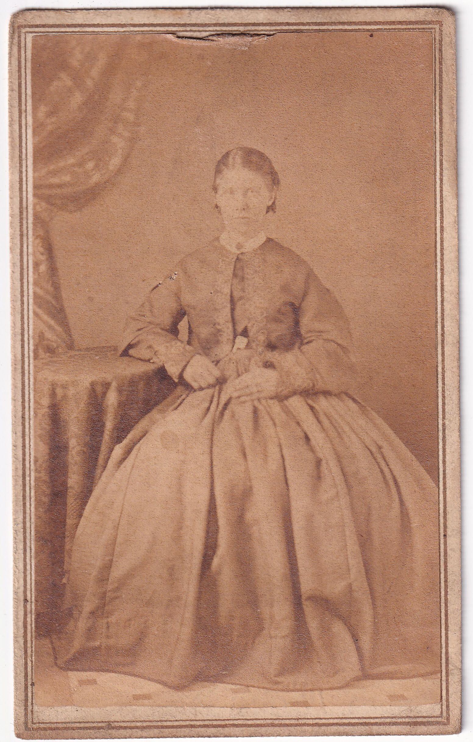 This photograph is included in a Carte-de-Visite sized photograph album that may have belonged to Sarah (Willis) Nutt [1832-1874] - wife of William Nutt, daughter of Richard Willis and Mary Swan. A piece of paper kept inside the album cover reads, "Sarah Willis Nutt / uncle Bill Nutt & Aunt." Handwritten inscriptions in the album also indicate family relationships to Sarah. It is not known how the album passed into the possession of the Moredock family, but there would certainly be numerous social and family connections that may have resulted in the transfer.