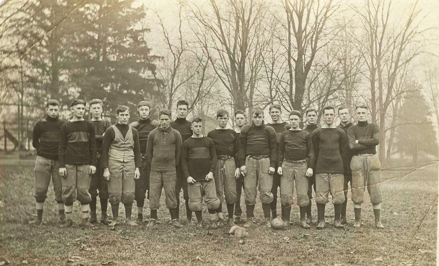 Source Citation: Wind Ridge High School Football Team, item no. RIGL-AN001-0018, Lewis Perry and Nora Etta (Kuhn) Riggle Collection, shared by Paula (Riggle) Whitfill and her aunt Joyce (Riggle) Hoover, Greene Connections Archives Project (www.GreeneConnections.com).